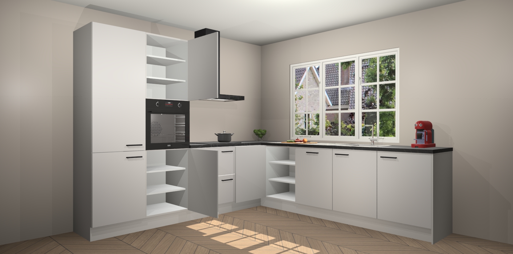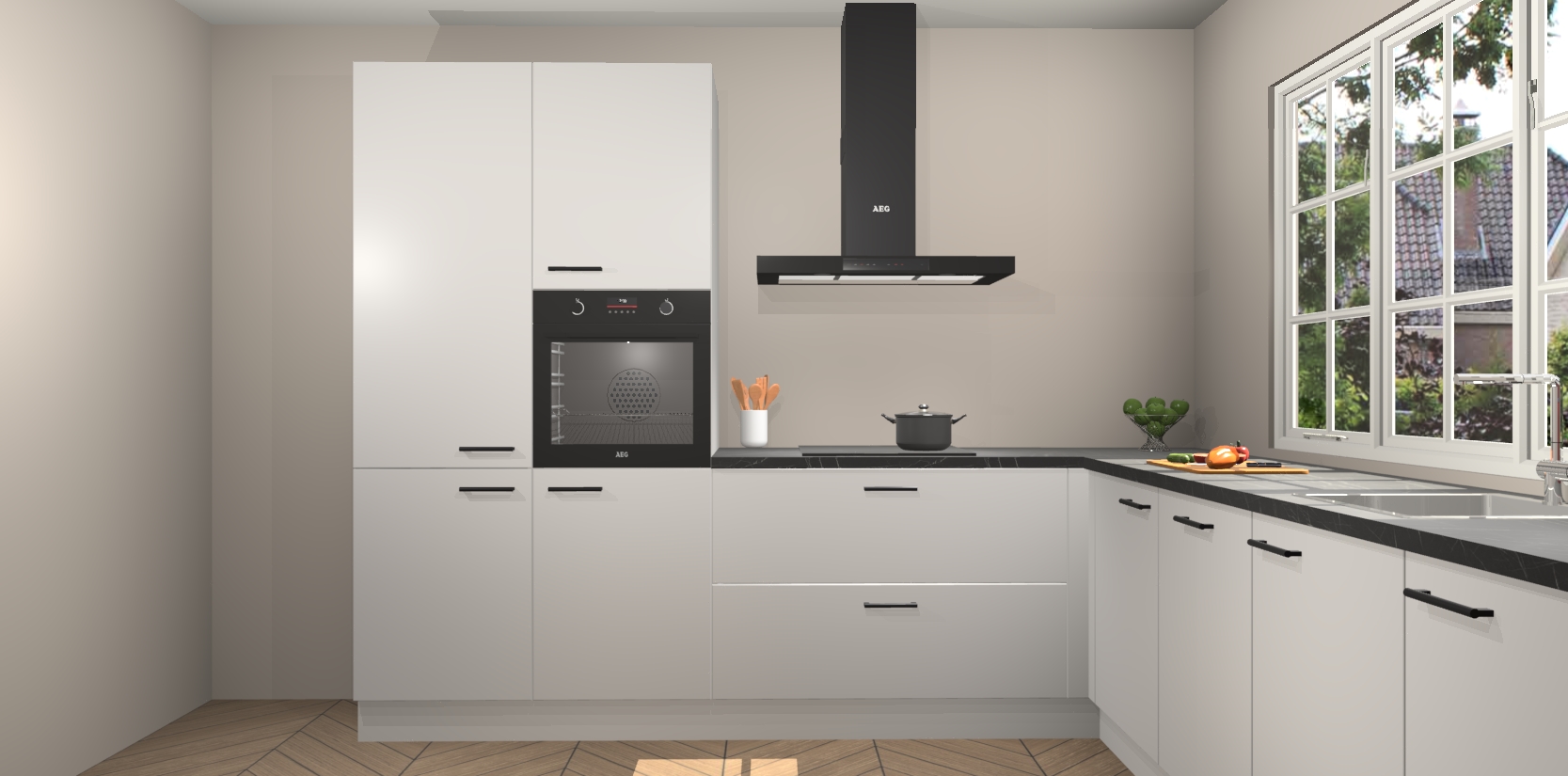 De keuken heeft veel opbergruimte, waardoor u alle ingrediënten gemakkelijk bereikbaar hebt staan. En daarnaast bevat deze volledig uitgeruste keuken ook 5 ingebouwde apparaten: een oven, inductiekookplaat, afzuigkap, vaatwasser en koelkast. Deze zijn heel eenvoudig na bestellen te upgraden naar AEG als u dit wilt. Bovendien zijn de softclose-kastdeuren ideaal; geef ze gewoon even een tikje en ze sluiten automatisch met geruisloze precisie.