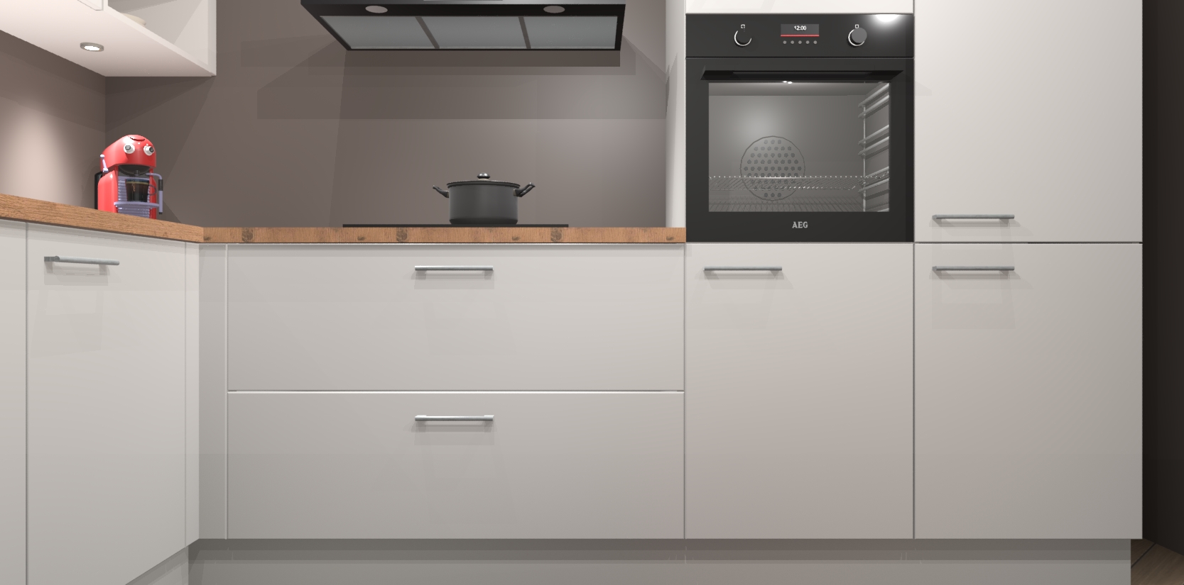 De Zijdegrijze keuken Cognac is een adembenemend ontwerp met een modern en tijdloos uiterlijk. Deze luxe keuken straalt echt aristocratisch uit, waardoor uw koken plezieriger zal worden! Het prachtige design begint bij de hoekkeuken, wat perfect past bij elk type interieur. Bovendien bevat deze hoogwaardige set vijf inbouwapparaten - van oven tot koelkast - die via bestelling naar AEG geüpgraded kunnen worden!