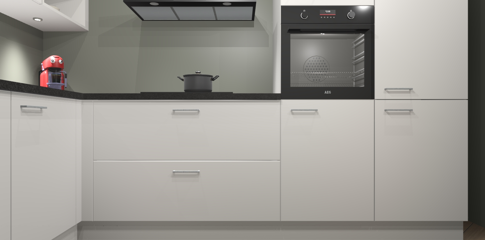 De Zijdegrijze keuken Cognac is een adembenemend ontwerp met een modern en tijdloos uiterlijk. Deze luxe keuken straalt echt aristocratisch uit, waardoor uw koken plezieriger zal worden! Het prachtige design begint bij de hoekkeuken, wat perfect past bij elk type interieur. Bovendien bevat deze hoogwaardige set vijf inbouwapparaten - van oven tot koelkast - die via bestelling naar AEG geüpgraded kunnen worden!
