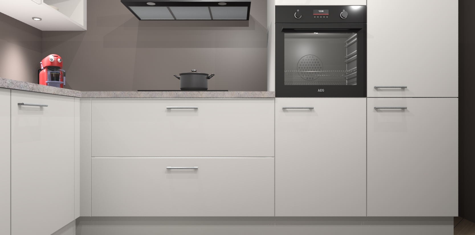 De Zijdegrijze keuken Cognac is een adembenemend ontwerp met een modern en tijdloos uiterlijk. Deze luxe keuken straalt echt aristocratisch uit, waardoor uw koken plezieriger zal worden! Het prachtige design begint bij de hoekkeuken, wat perfect past bij elk type interieur. Bovendien bevat deze hoogwaardige set vijf inbouwapparaten - van oven tot koelkast - die via bestelling naar AEG geüpgraded kunnen worden!