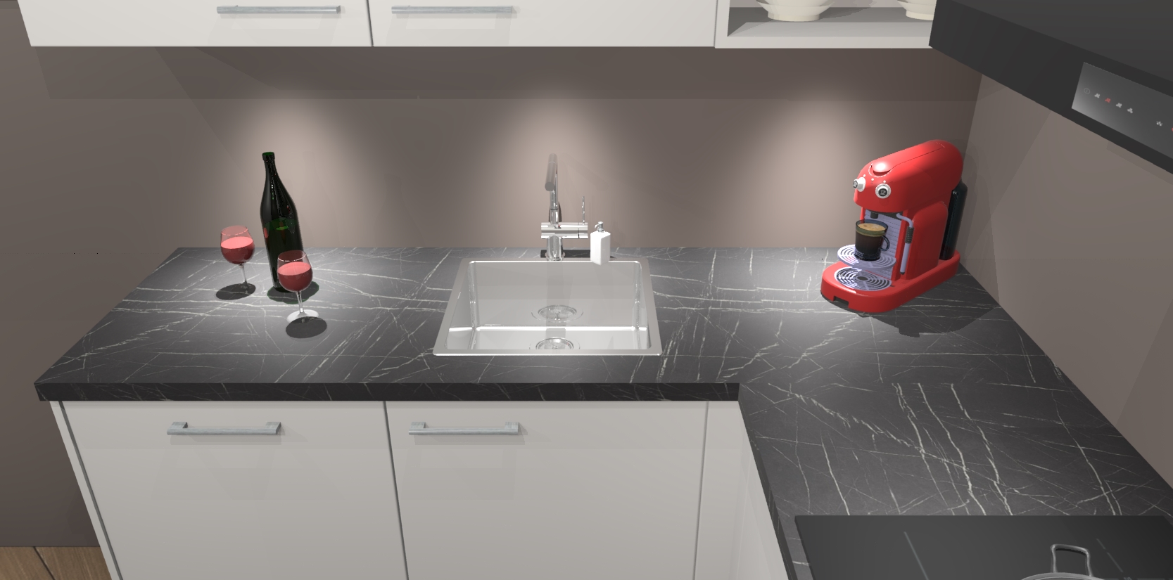 - Bij een hoekwerkblad zijn de hoeken in gevreesd en op maat gemaakt