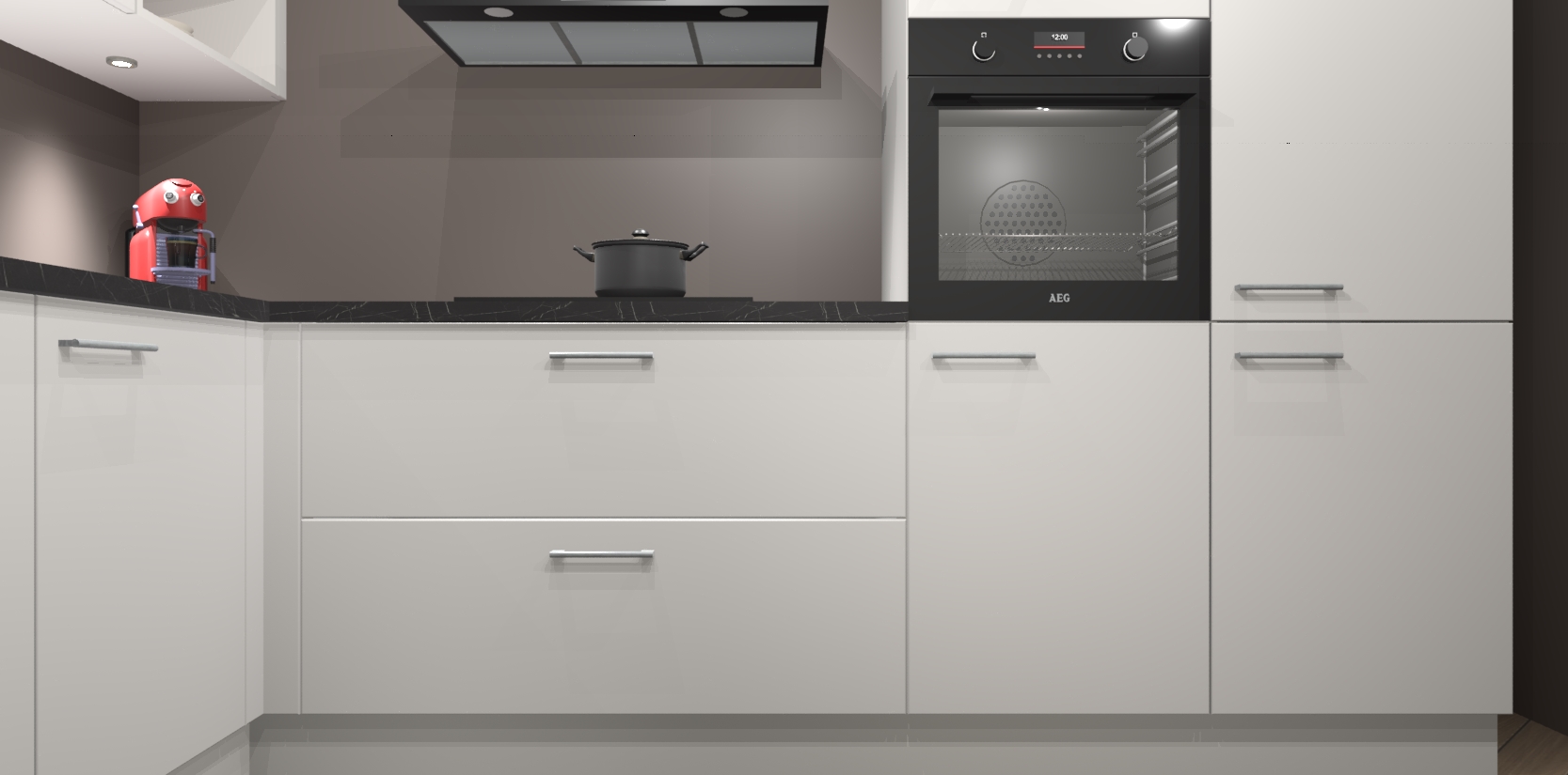 De Zijdegrijze keuken Cognac is een adembenemend ontwerp met een modern en tijdloos uiterlijk. Deze luxe keuken straalt echt aristocratisch uit, waardoor uw koken plezieriger zal worden! Het prachtige design begint bij de hoekkeuken, wat perfect past bij elk type interieur. Bovendien bevat deze hoogwaardige set vijf inbouwapparaten - van oven tot koelkast - die via bestelling naar AEG geüpgraded kunnen worden!