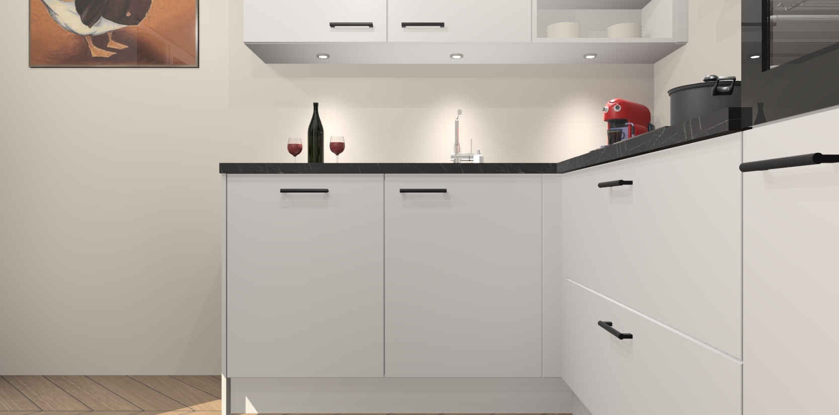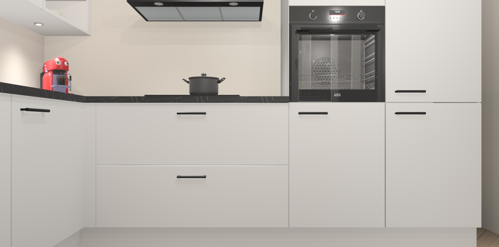 Inclusief plinten, stelpoten en werkblad