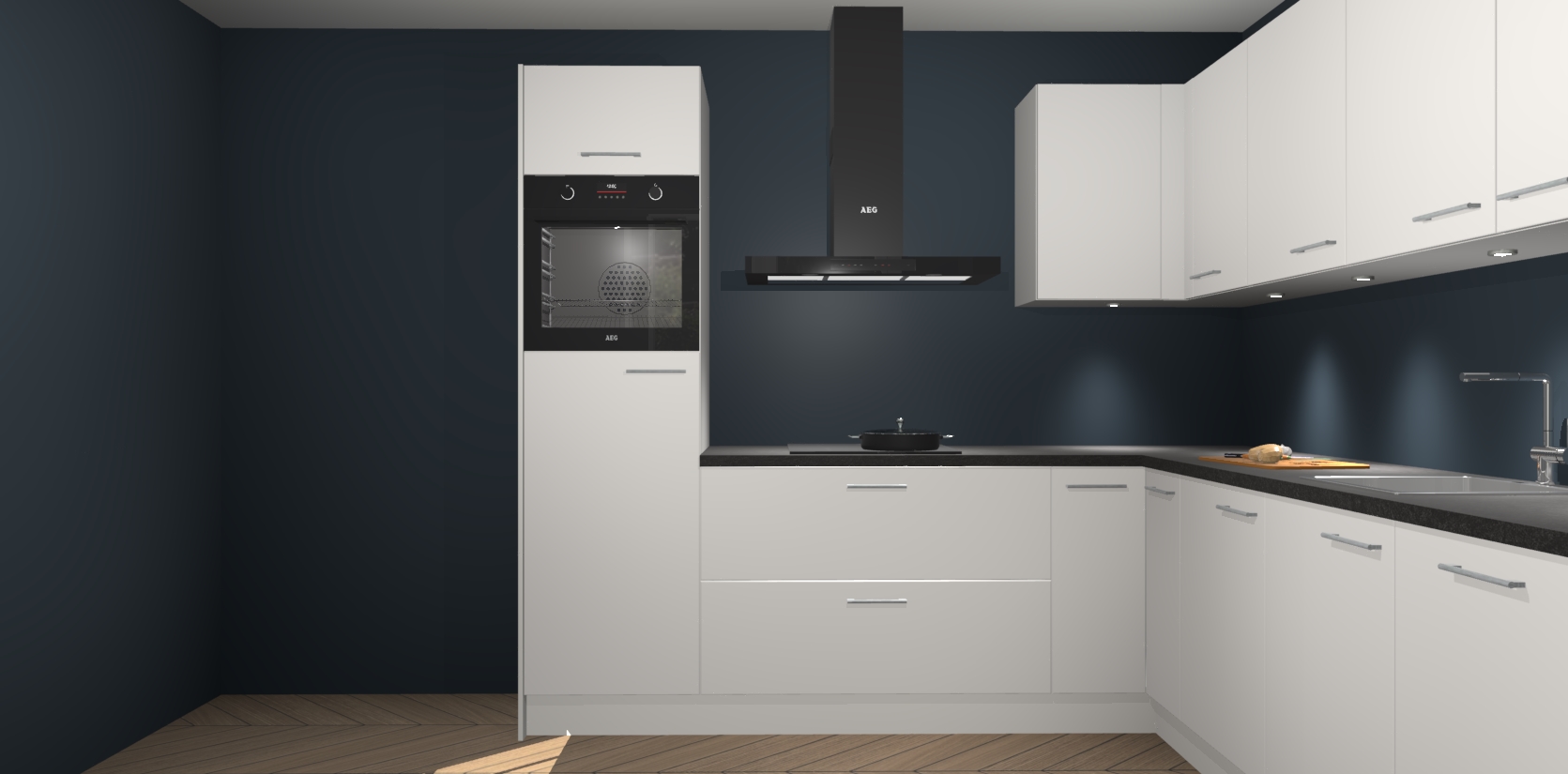De Zijdegrijze keuken Debar is uitgerust met vijf inbouwapparaten die elke kooktaak handig en efficiënt maken. Een oven, inductiekookplaat, afzuigkap, vaatwasser en koelkast zijn standaard, maar kunnen na bestelling eenvoudig worden geupgrade naar AEG. Profiteer vervolgens van de softclose deuren voor snelle toegang en geruisloze toegang.