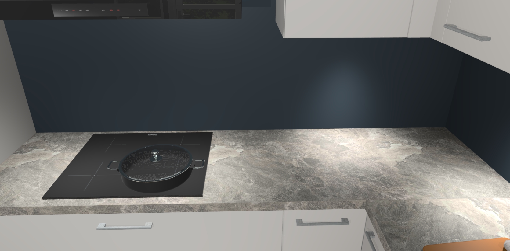 De Zijdegrijze keuken Debar is uitgerust met vijf inbouwapparaten die elke kooktaak handig en efficiënt maken. Een oven, inductiekookplaat, afzuigkap, vaatwasser en koelkast zijn standaard, maar kunnen na bestelling eenvoudig worden geupgrade naar AEG. Profiteer vervolgens van de softclose deuren voor snelle toegang en geruisloze toegang.