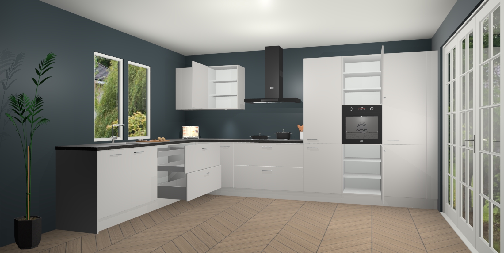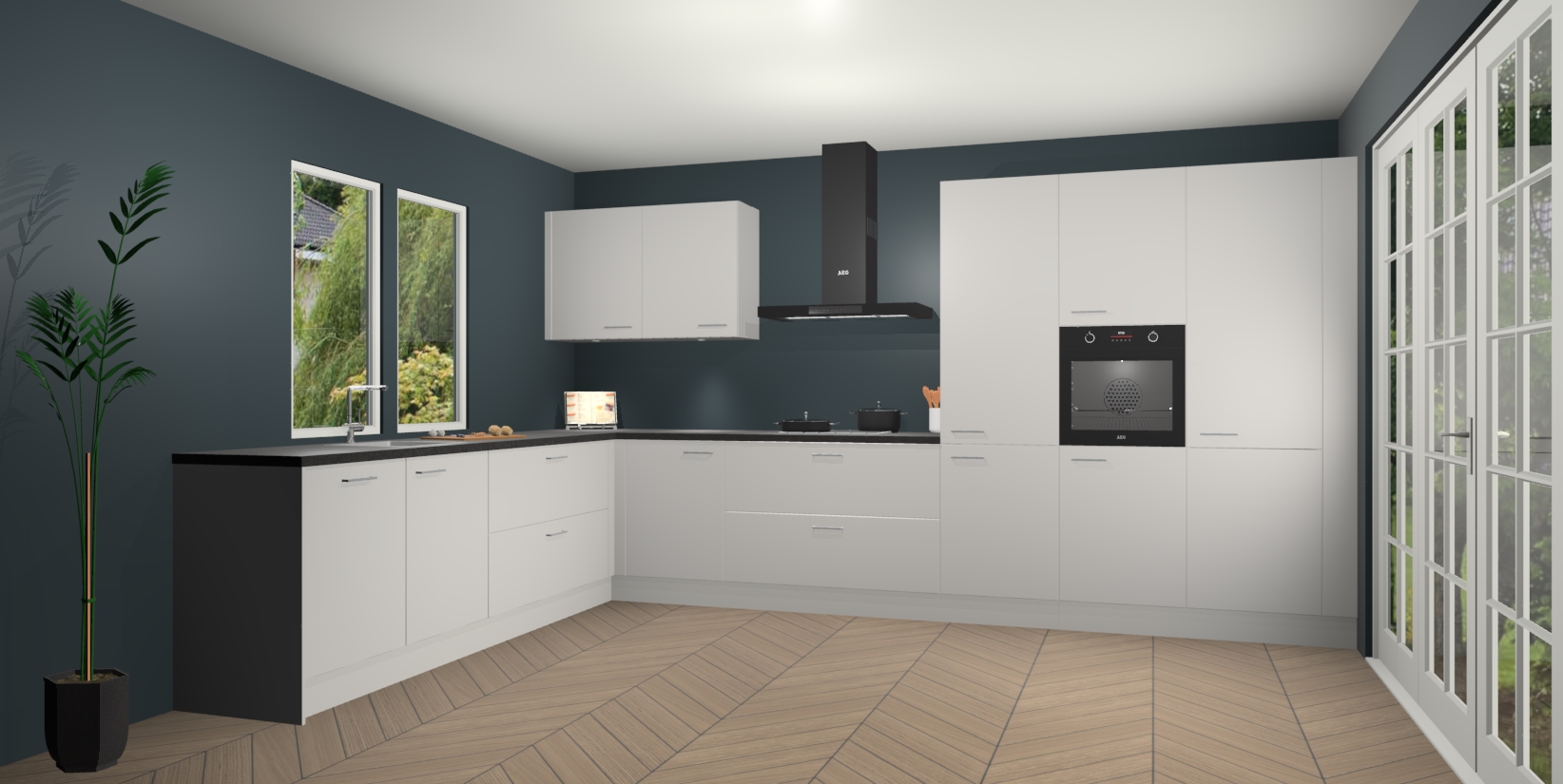 Inclusief plinten, stelpoten en werkblad