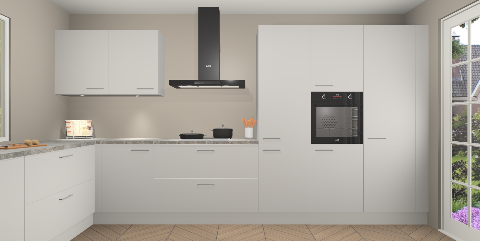 Heeft u nog apparatuur nodig? Geen probleem: de Zijdegrijze keuken Debrecen bevat vijf ingebouwde apparaten - een oven, inductiekookplaat, afzuigkap, vaatwasser en koelkast - die gemakkelijk kunnen worden bijgewerkt naar AEG na bestelling. En als dat nog niet genoeg is; onze kasten worden pre-geassembleerd geleverd en zijn verkrijgbaar tegen een vastgeroeste lage prijs! U hoeft nooit meer te zoeken naar goede kwaliteit en service want onze producten hebben echt Duitse kwaliteit.
