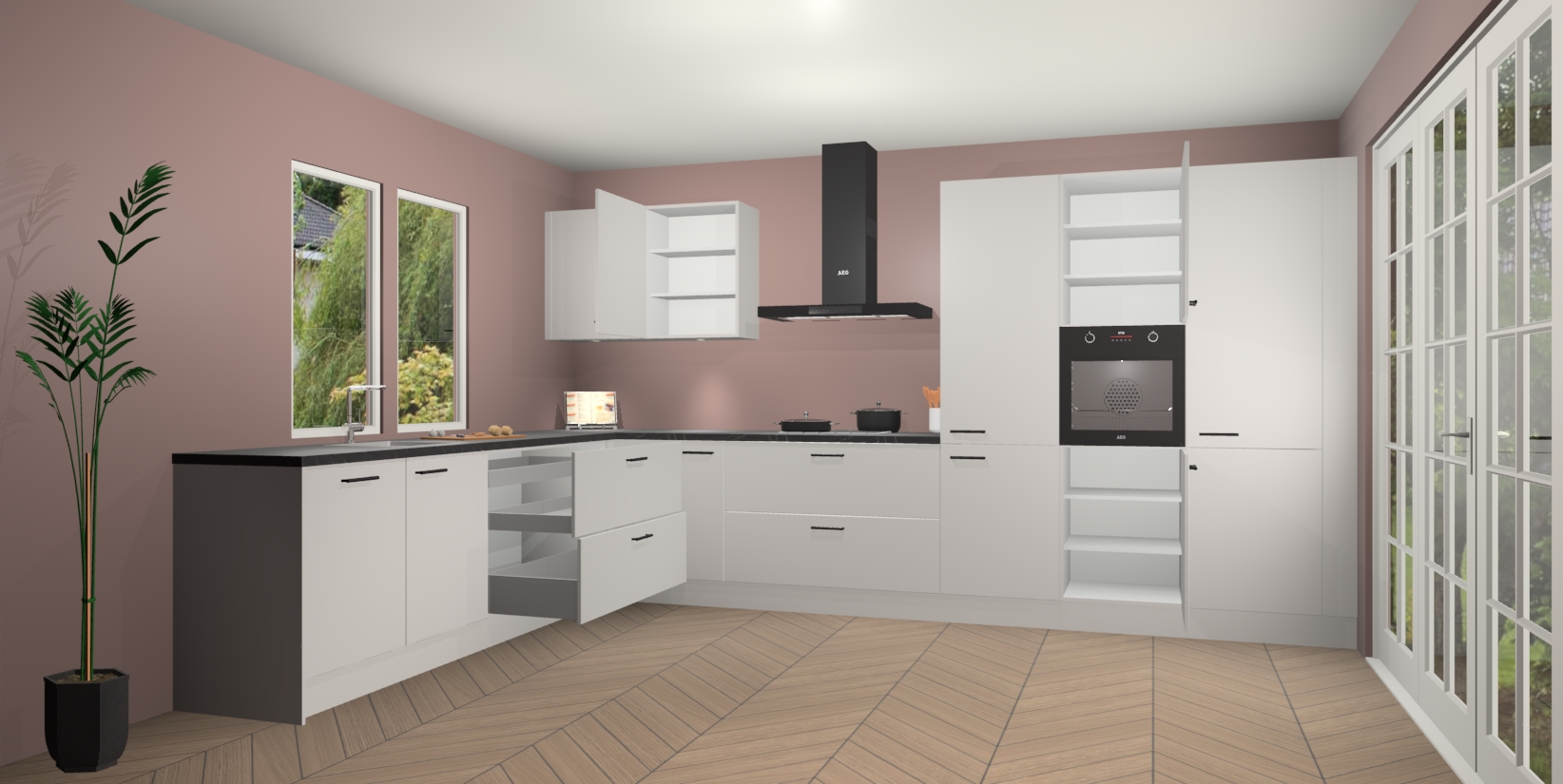Inclusief plinten, stelpoten en werkblad