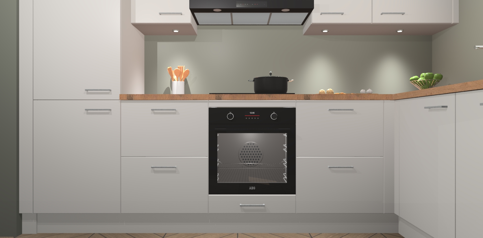 De Zijdegrijze keuken Geneve is uitgerust met 5 inbouwapparaten - een oven, inductiekookplaat, afzuigkap, vaatwasser en koelkast - voor al uw kook- en bewaarbehoeftes. U kunt deze apparaten desgewenst eenvoudig upgraden naar AEG of de oven omruilen voor een combimagnetron na het plaatsen van uw bestelling. En met de soft close deuren, voldoende opbergruimte en kasten die voorgemonteerd worden geleverd, bent u in een mum van tijd klaar om heerlijke maaltijden te bereiden!