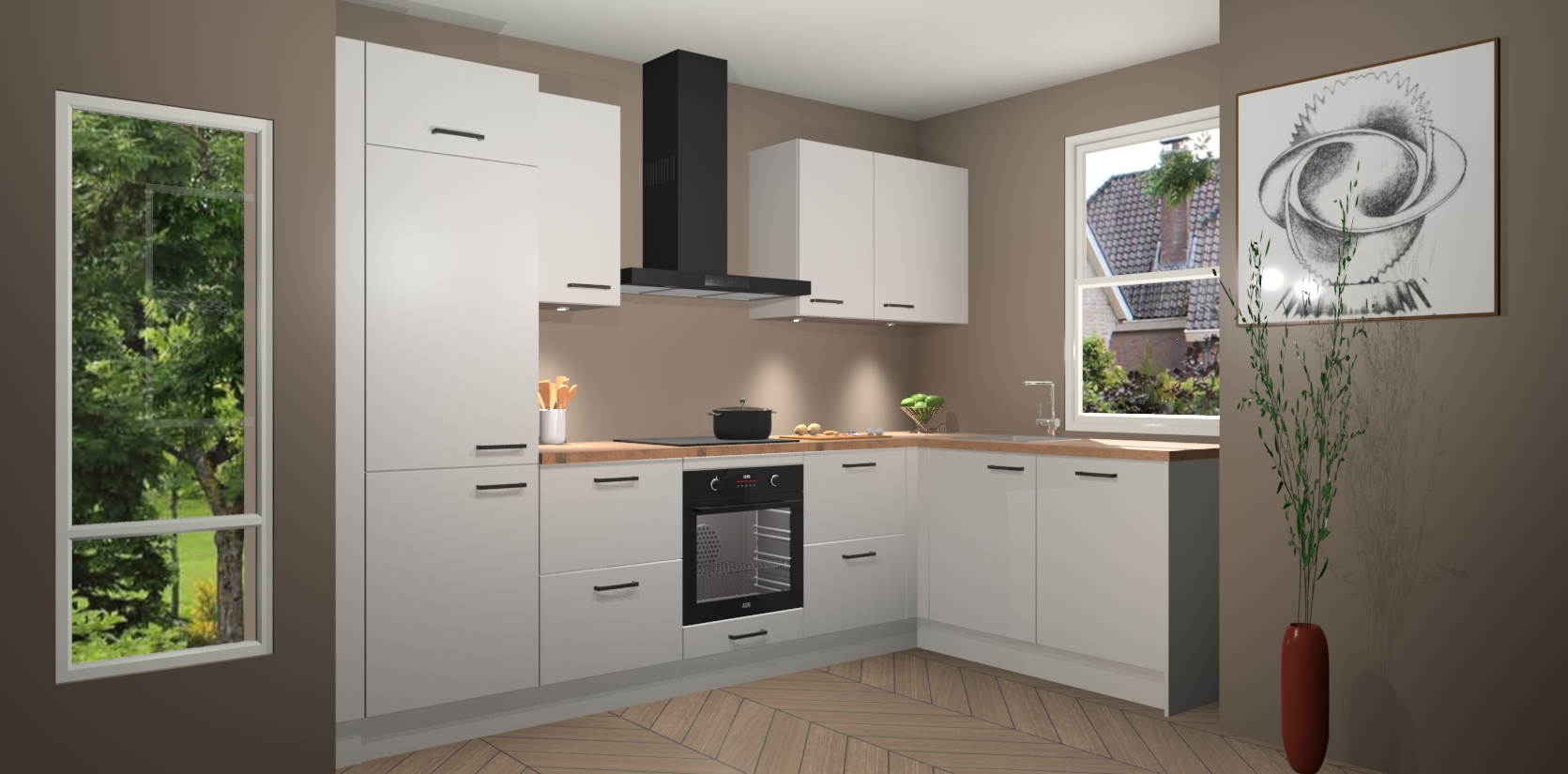 De Zijdegrijze keuken Geneve is precies wat u nodig heeft als u op zoek bent naar modern design, versmolten met tijdloze schoonheid. De strakke afwerking voegt klasse toe terwijl het toch een uitnodigende sfeer behoudt; zeker om zowel gasten als uzelf te inspireren om in stijl te gaan koken! En nog beter, het zal uw budget niet breken - dus waarom wachten? Met de Zijdegrijze keuken Geneve bent u verzekerd van kwaliteit zonder in te leveren op de prijs!