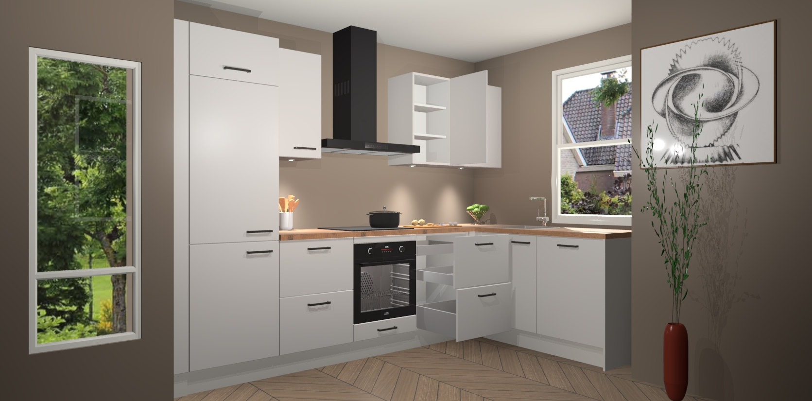 In deze box zijn alle kleuren verzameld van de deuren en werkbladen. Vraag de gratis kleurenbox aan en kijk thuis rustig verder!