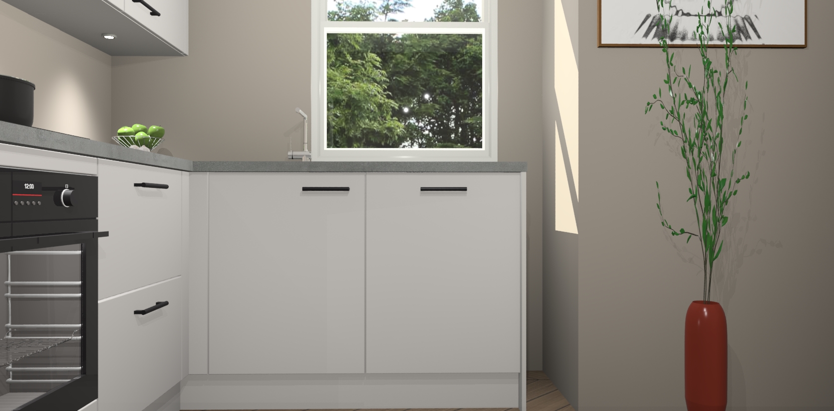 De Zijdegrijze keuken Geneve is uitgerust met 5 inbouwapparaten - een oven, inductiekookplaat, afzuigkap, vaatwasser en koelkast - voor al uw kook- en bewaarbehoeftes. U kunt deze apparaten desgewenst eenvoudig upgraden naar AEG of de oven omruilen voor een combimagnetron na het plaatsen van uw bestelling. En met de soft close deuren, voldoende opbergruimte en kasten die voorgemonteerd worden geleverd, bent u in een mum van tijd klaar om heerlijke maaltijden te bereiden!