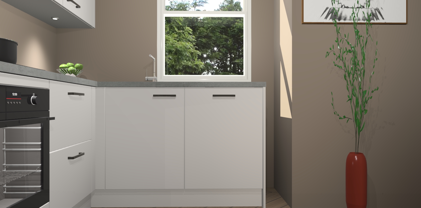 De Zijdegrijze keuken Geneve is precies wat u nodig heeft als u op zoek bent naar modern design, versmolten met tijdloze schoonheid. De strakke afwerking voegt klasse toe terwijl het toch een uitnodigende sfeer behoudt; zeker om zowel gasten als uzelf te inspireren om in stijl te gaan koken! En nog beter, het zal uw budget niet breken - dus waarom wachten? Met de Zijdegrijze keuken Geneve bent u verzekerd van kwaliteit zonder in te leveren op de prijs!