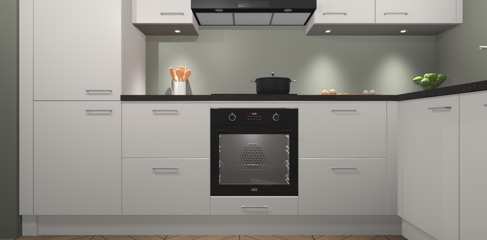 De Zijdegrijze keuken Geneve is uitgerust met 5 inbouwapparaten - een oven, inductiekookplaat, afzuigkap, vaatwasser en koelkast - voor al uw kook- en bewaarbehoeftes. U kunt deze apparaten desgewenst eenvoudig upgraden naar AEG of de oven omruilen voor een combimagnetron na het plaatsen van uw bestelling. En met de soft close deuren, voldoende opbergruimte en kasten die voorgemonteerd worden geleverd, bent u in een mum van tijd klaar om heerlijke maaltijden te bereiden!