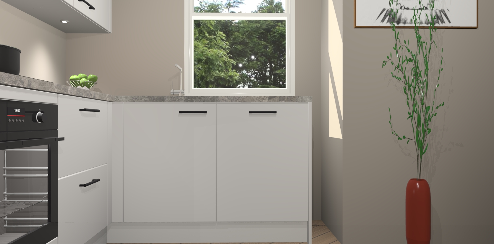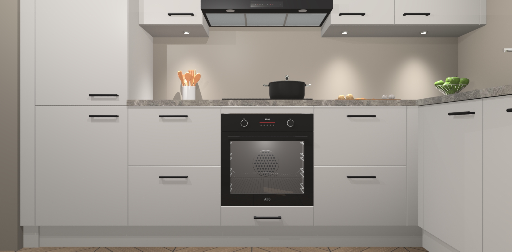De Zijdegrijze keuken Geneve is uitgerust met 5 inbouwapparaten - een oven, inductiekookplaat, afzuigkap, vaatwasser en koelkast - voor al uw kook- en bewaarbehoeftes. U kunt deze apparaten desgewenst eenvoudig upgraden naar AEG of de oven omruilen voor een combimagnetron na het plaatsen van uw bestelling. En met de soft close deuren, voldoende opbergruimte en kasten die voorgemonteerd worden geleverd, bent u in een mum van tijd klaar om heerlijke maaltijden te bereiden!