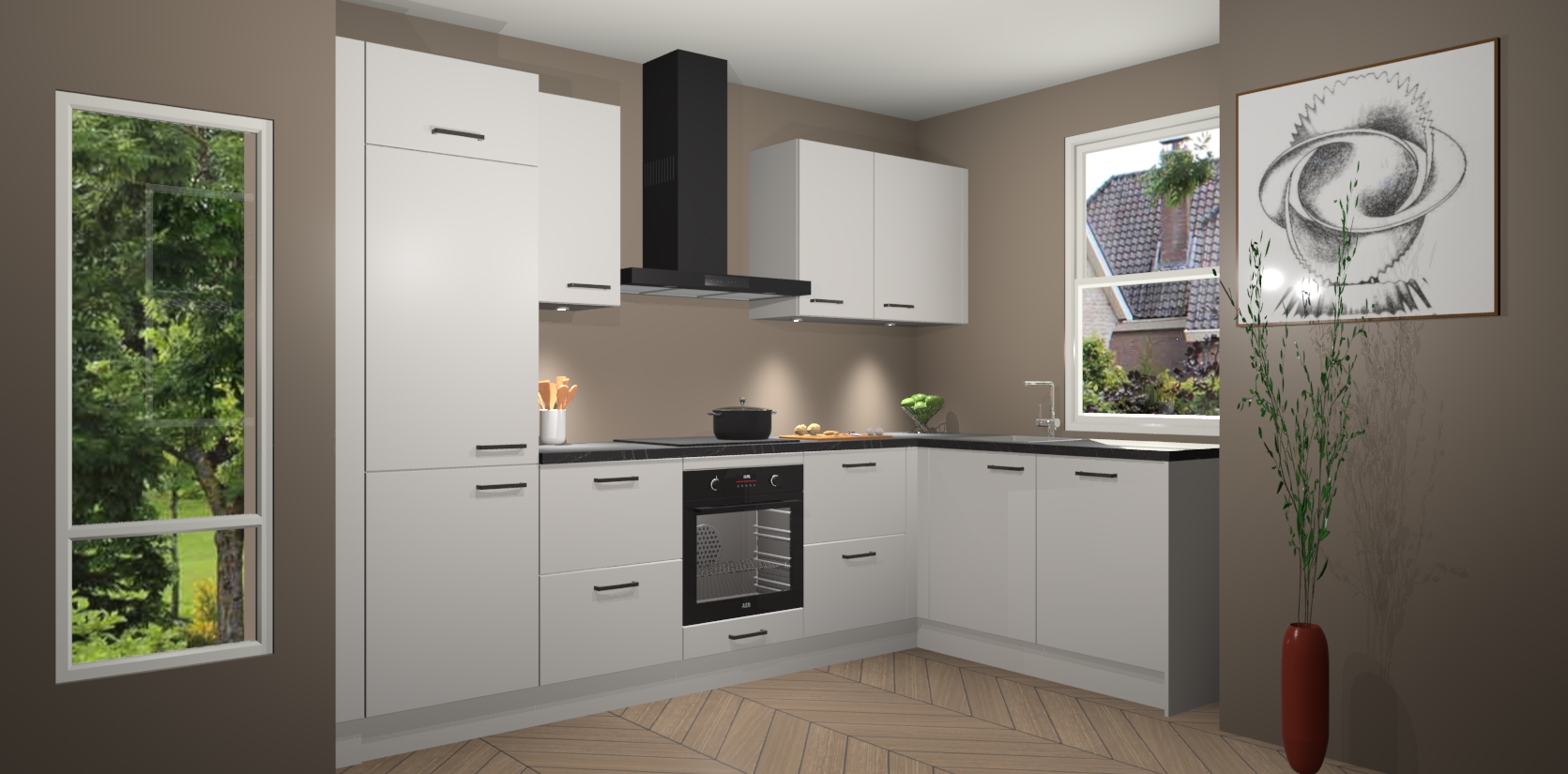 De Zijdegrijze keuken Geneve is precies wat u nodig heeft als u op zoek bent naar modern design, versmolten met tijdloze schoonheid. De strakke afwerking voegt klasse toe terwijl het toch een uitnodigende sfeer behoudt; zeker om zowel gasten als uzelf te inspireren om in stijl te gaan koken! En nog beter, het zal uw budget niet breken - dus waarom wachten? Met de Zijdegrijze keuken Geneve bent u verzekerd van kwaliteit zonder in te leveren op de prijs!