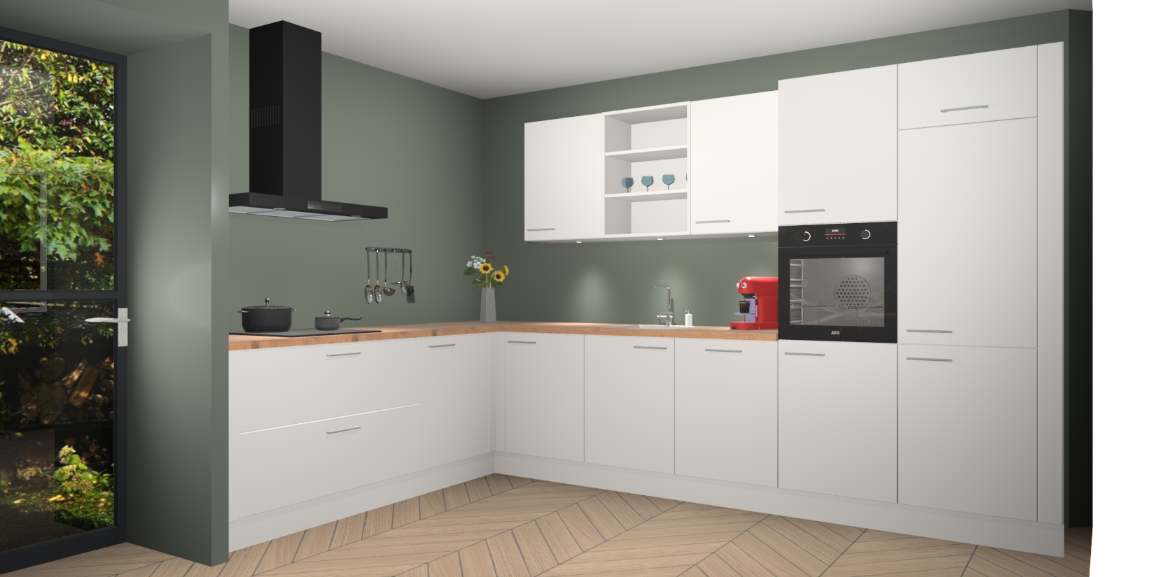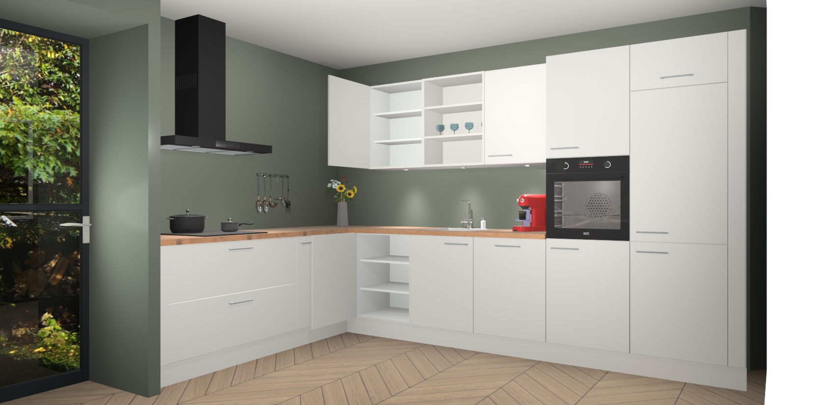 Inclusief plinten, stelpoten en werkblad