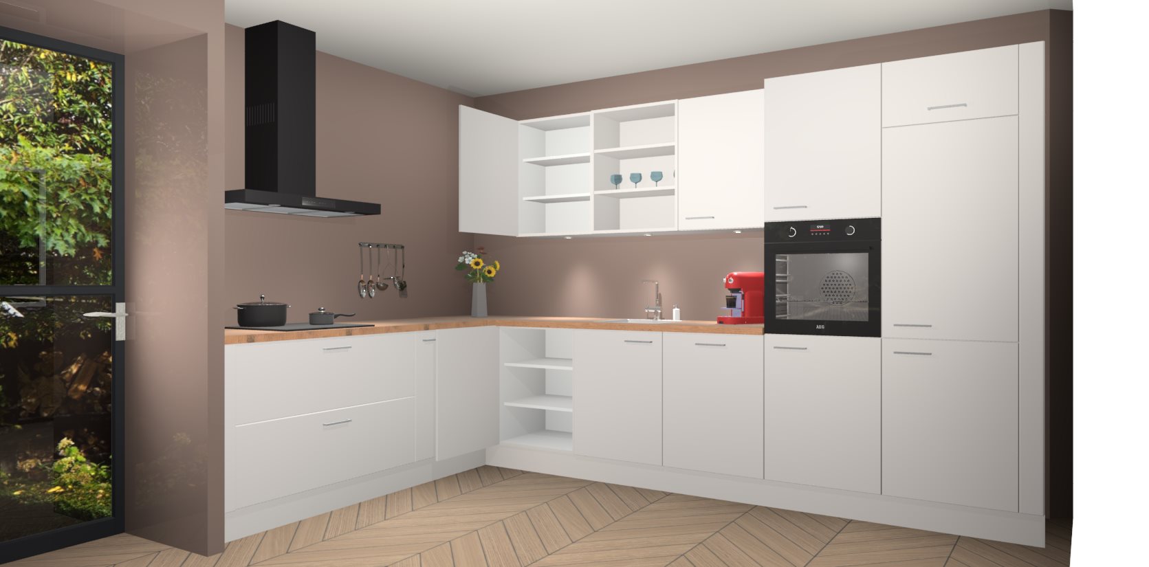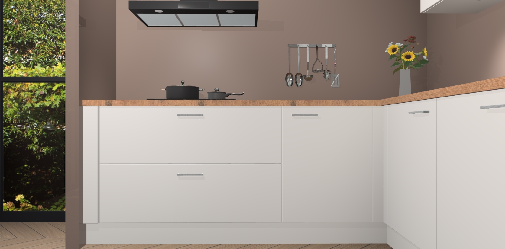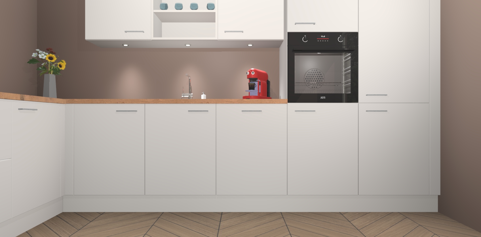 Inclusief plinten, stelpoten en werkblad