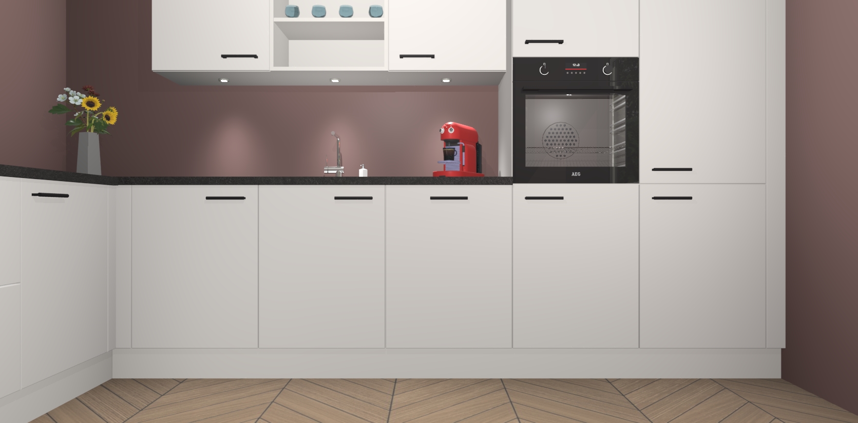 In deze box zijn alle kleuren verzameld van de deuren en werkbladen. Vraag de gratis kleurenbox aan en kijk thuis rustig verder!