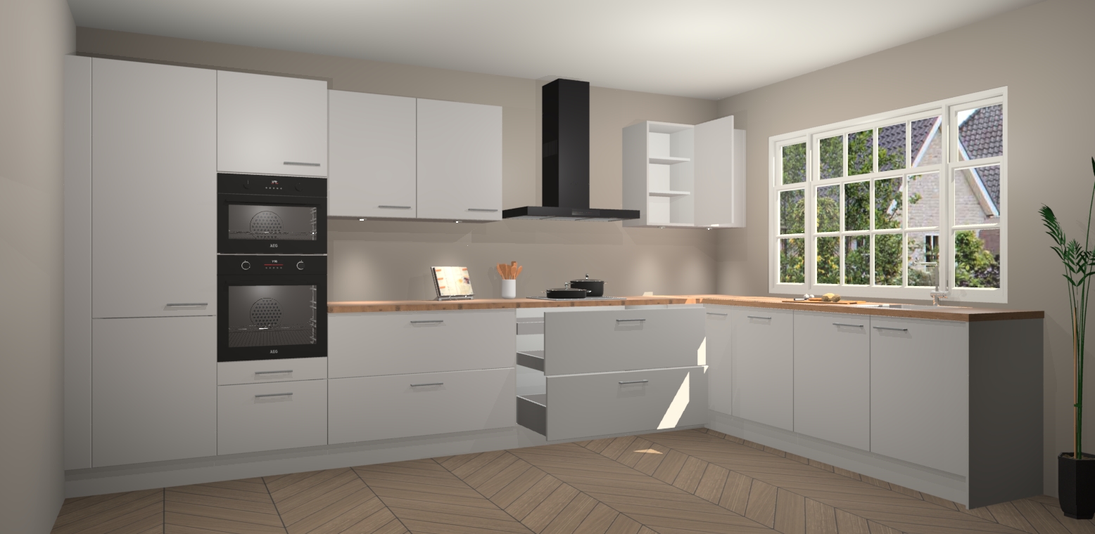 Kom dichtbij de perfecte keuken van uw dromen met de zijdegrijze keuken Graz. Met een prachtige houtlook en eigentijds ontwerp, straalt deze keuken warmte en sfeer uit. Of u nu liefhebber bent van traditionele of moderne stijlen, er is genoeg ruimte om aan al uw behoeften te voldoen.