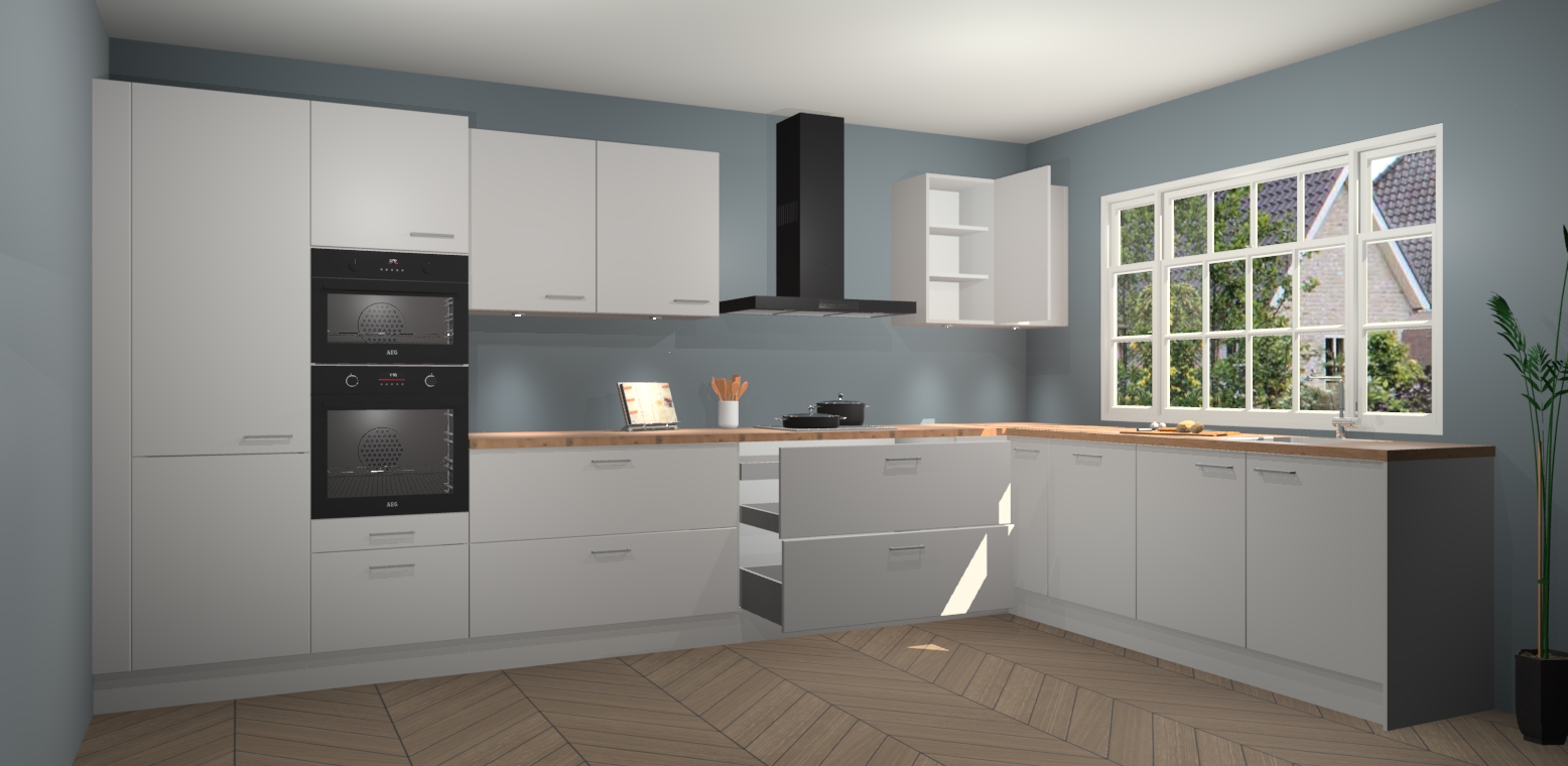 Kom dichtbij de perfecte keuken van uw dromen met de zijdegrijze keuken Graz. Met een prachtige houtlook en eigentijds ontwerp, straalt deze keuken warmte en sfeer uit. Of u nu liefhebber bent van traditionele of moderne stijlen, er is genoeg ruimte om aan al uw behoeften te voldoen.