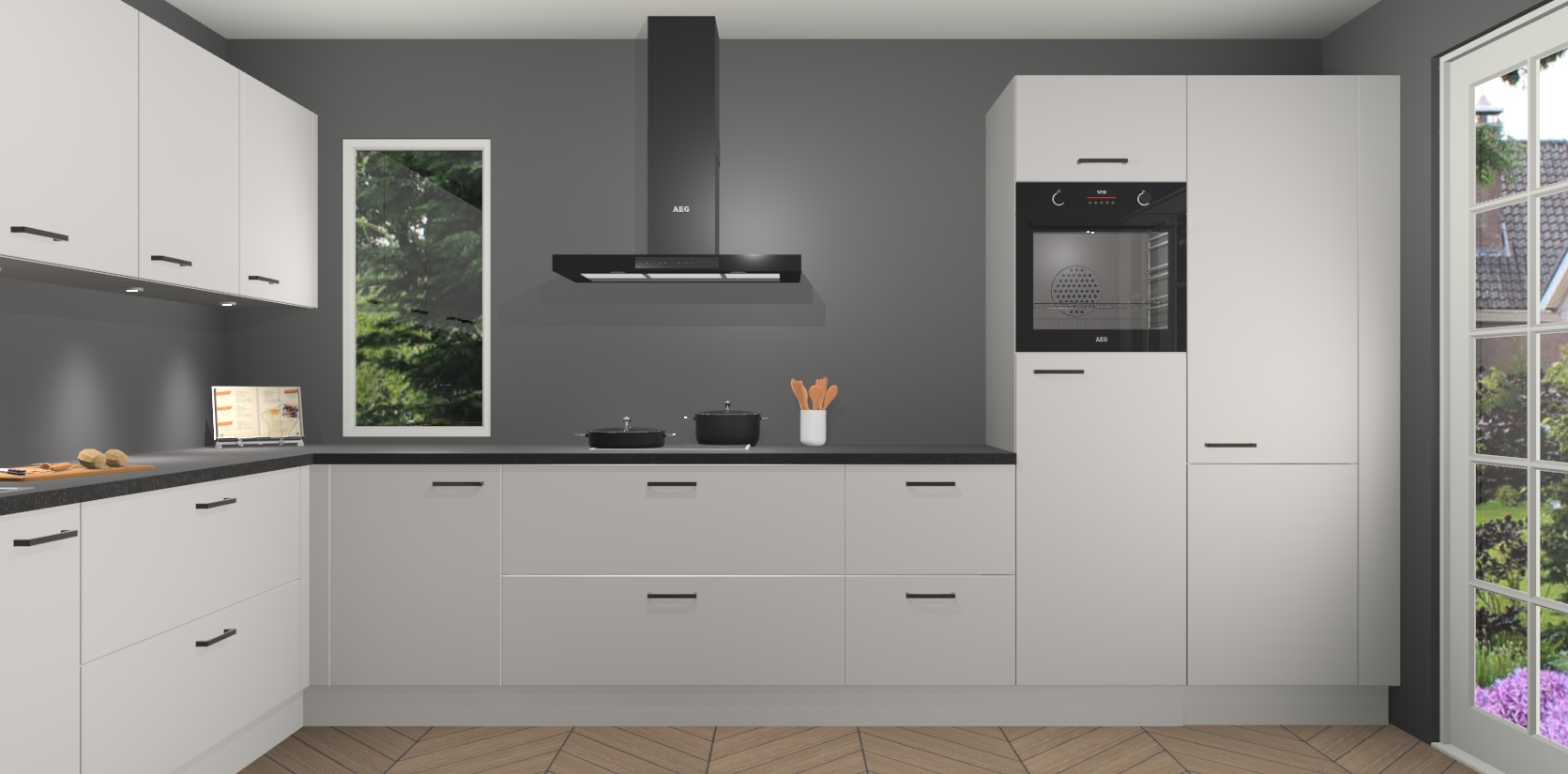 Heeft u nog apparatuur nodig? Geen probleem: de zijdegrijze keuken Harare bevat vijf ingebouwde apparaten - een oven, inductiekookplaat, afzuigkap, vaatwasser en koelkast - die gemakkelijk kunnen worden bijgewerkt naar AEG na bestelling. En als dat nog niet genoeg is; onze kasten worden pre-geassembleerd geleverd en zijn verkrijgbaar tegen een vastgeroeste lage prijs! U hoeft nooit meer te zoeken naar goede kwaliteit en service want onze producten hebben echt Duitse kwaliteit.