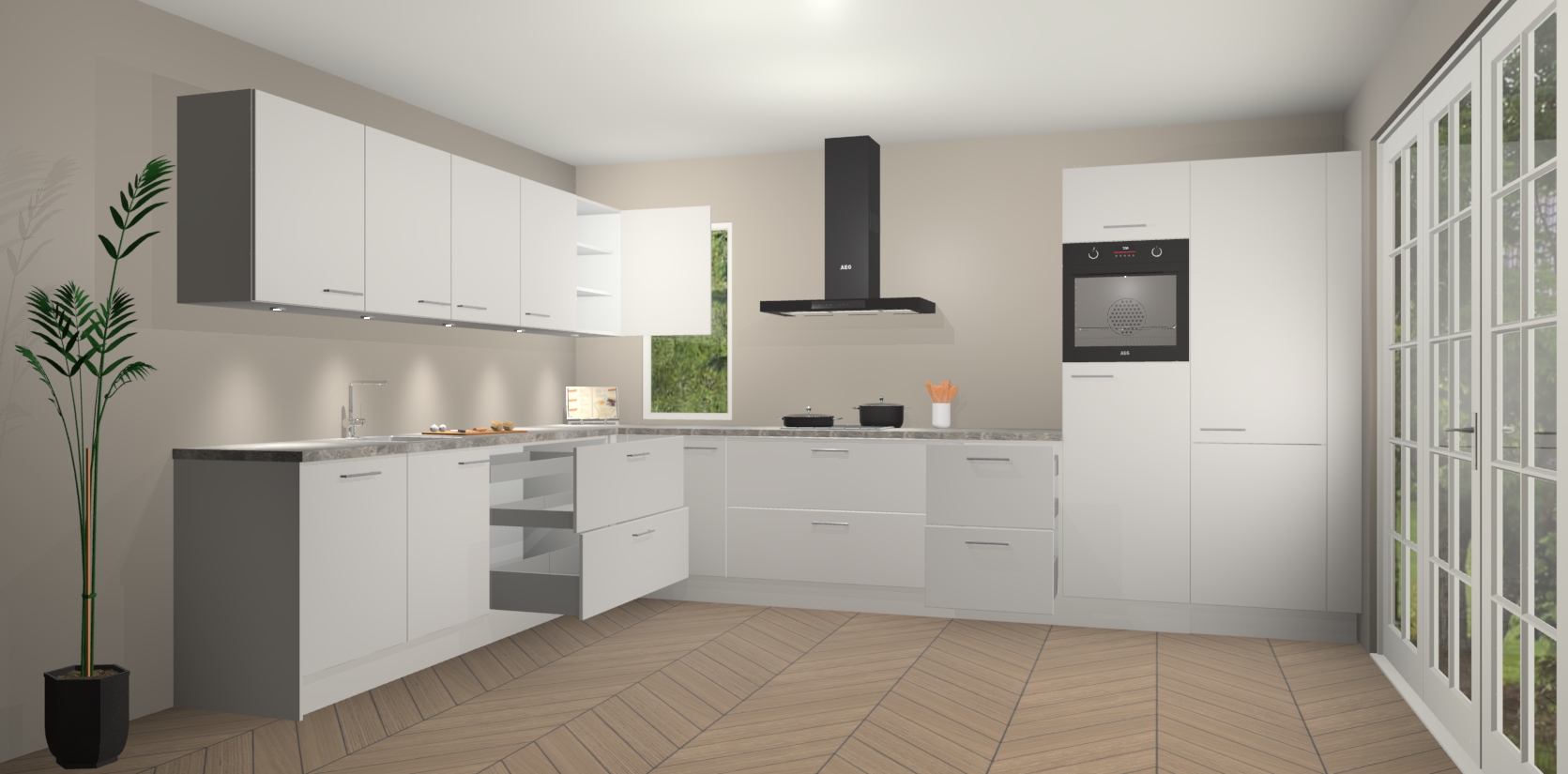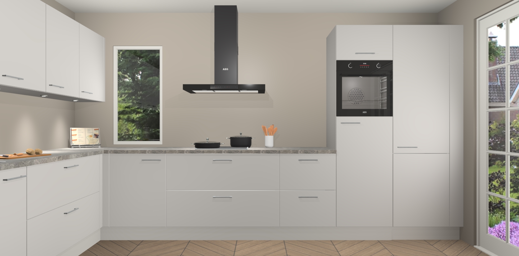 Heeft u nog apparatuur nodig? Geen probleem: de zijdegrijze keuken Harare bevat vijf ingebouwde apparaten - een oven, inductiekookplaat, afzuigkap, vaatwasser en koelkast - die gemakkelijk kunnen worden bijgewerkt naar AEG na bestelling. En als dat nog niet genoeg is; onze kasten worden pre-geassembleerd geleverd en zijn verkrijgbaar tegen een vastgeroeste lage prijs! U hoeft nooit meer te zoeken naar goede kwaliteit en service want onze producten hebben echt Duitse kwaliteit.