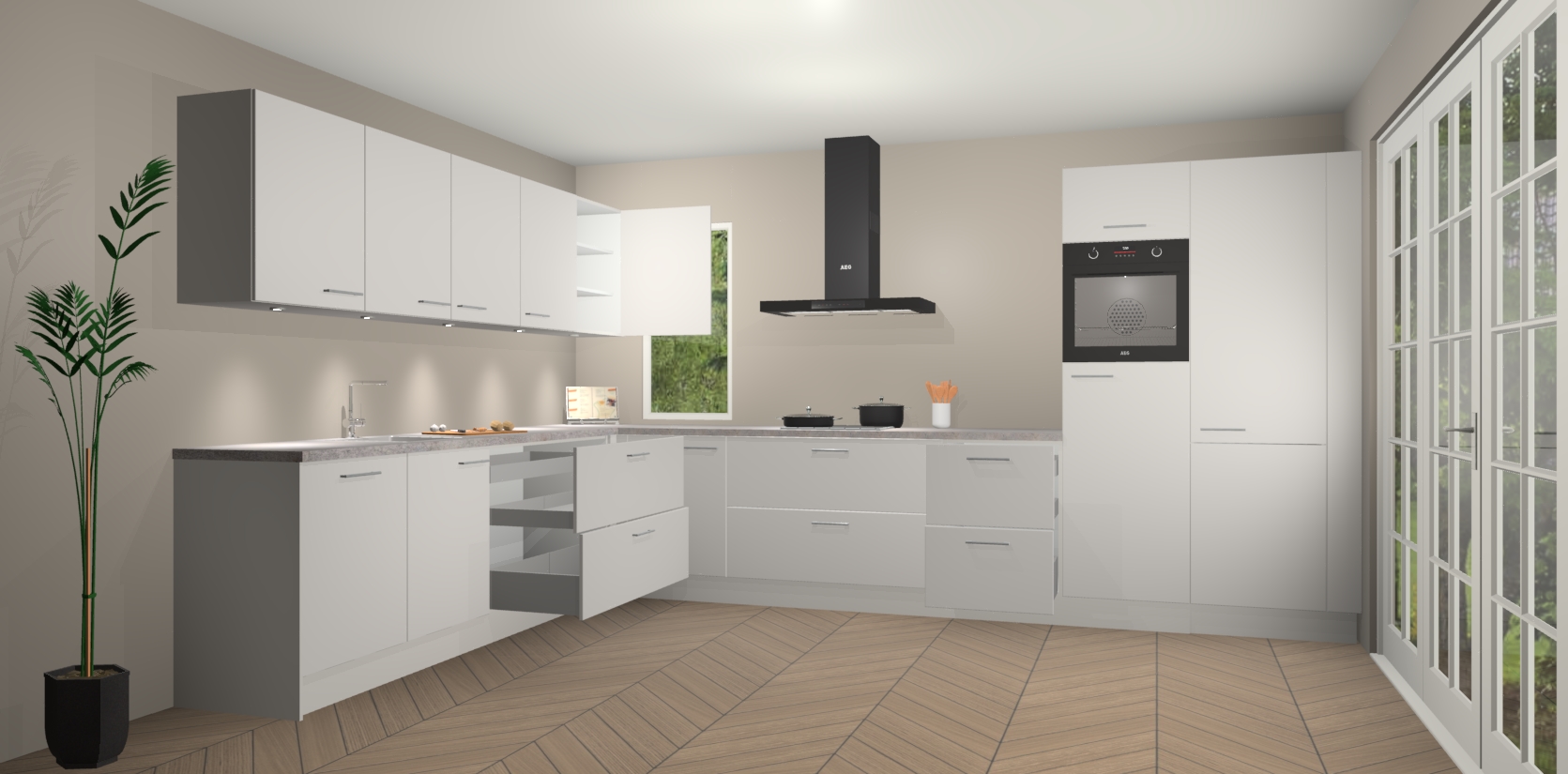 Heeft u nog apparatuur nodig? Geen probleem: de zijdegrijze keuken Harare bevat vijf ingebouwde apparaten - een oven, inductiekookplaat, afzuigkap, vaatwasser en koelkast - die gemakkelijk kunnen worden bijgewerkt naar AEG na bestelling. En als dat nog niet genoeg is; onze kasten worden pre-geassembleerd geleverd en zijn verkrijgbaar tegen een vastgeroeste lage prijs! U hoeft nooit meer te zoeken naar goede kwaliteit en service want onze producten hebben echt Duitse kwaliteit.