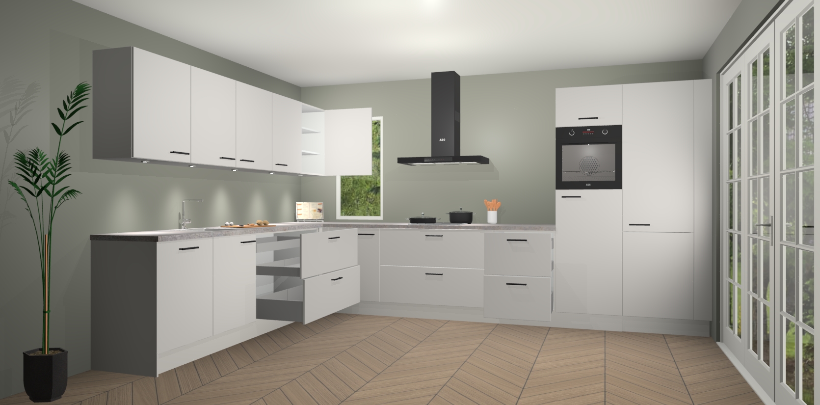 Heeft u nog apparatuur nodig? Geen probleem: de zijdegrijze keuken Harare bevat vijf ingebouwde apparaten - een oven, inductiekookplaat, afzuigkap, vaatwasser en koelkast - die gemakkelijk kunnen worden bijgewerkt naar AEG na bestelling. En als dat nog niet genoeg is; onze kasten worden pre-geassembleerd geleverd en zijn verkrijgbaar tegen een vastgeroeste lage prijs! U hoeft nooit meer te zoeken naar goede kwaliteit en service want onze producten hebben echt Duitse kwaliteit.