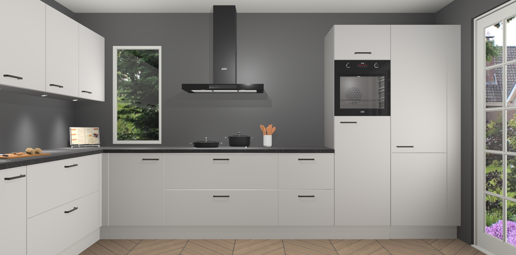 Heeft u nog apparatuur nodig? Geen probleem: de zijdegrijze keuken Harare bevat vijf ingebouwde apparaten - een oven, inductiekookplaat, afzuigkap, vaatwasser en koelkast - die gemakkelijk kunnen worden bijgewerkt naar AEG na bestelling. En als dat nog niet genoeg is; onze kasten worden pre-geassembleerd geleverd en zijn verkrijgbaar tegen een vastgeroeste lage prijs! U hoeft nooit meer te zoeken naar goede kwaliteit en service want onze producten hebben echt Duitse kwaliteit.