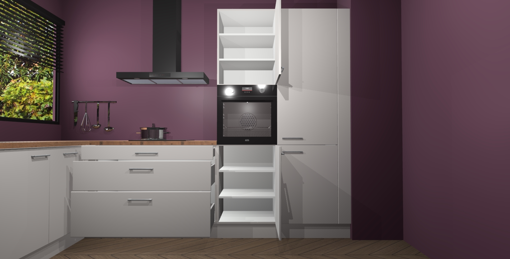 Met een modern, tijdloos design en ruime opslagruimte, zult u zich in no-time thuis voelen in uw nieuwe keuken. Uw leven wordt eenvoudiger met de soft-close deuren die voor het ultieme stille comfort zorgen - geen geluid dat u stoort terwijl u kookt. Ook is de keuken voorzien van 5 ingebouwde apparaten: een oven, inductie kookplaat, afzuigkap, vaatwasser en koelkast. Deze kunnen gemakkelijk na bestelling worden bijgewerkt naar AEG - waardoor uw luxe ervaring compleet is.