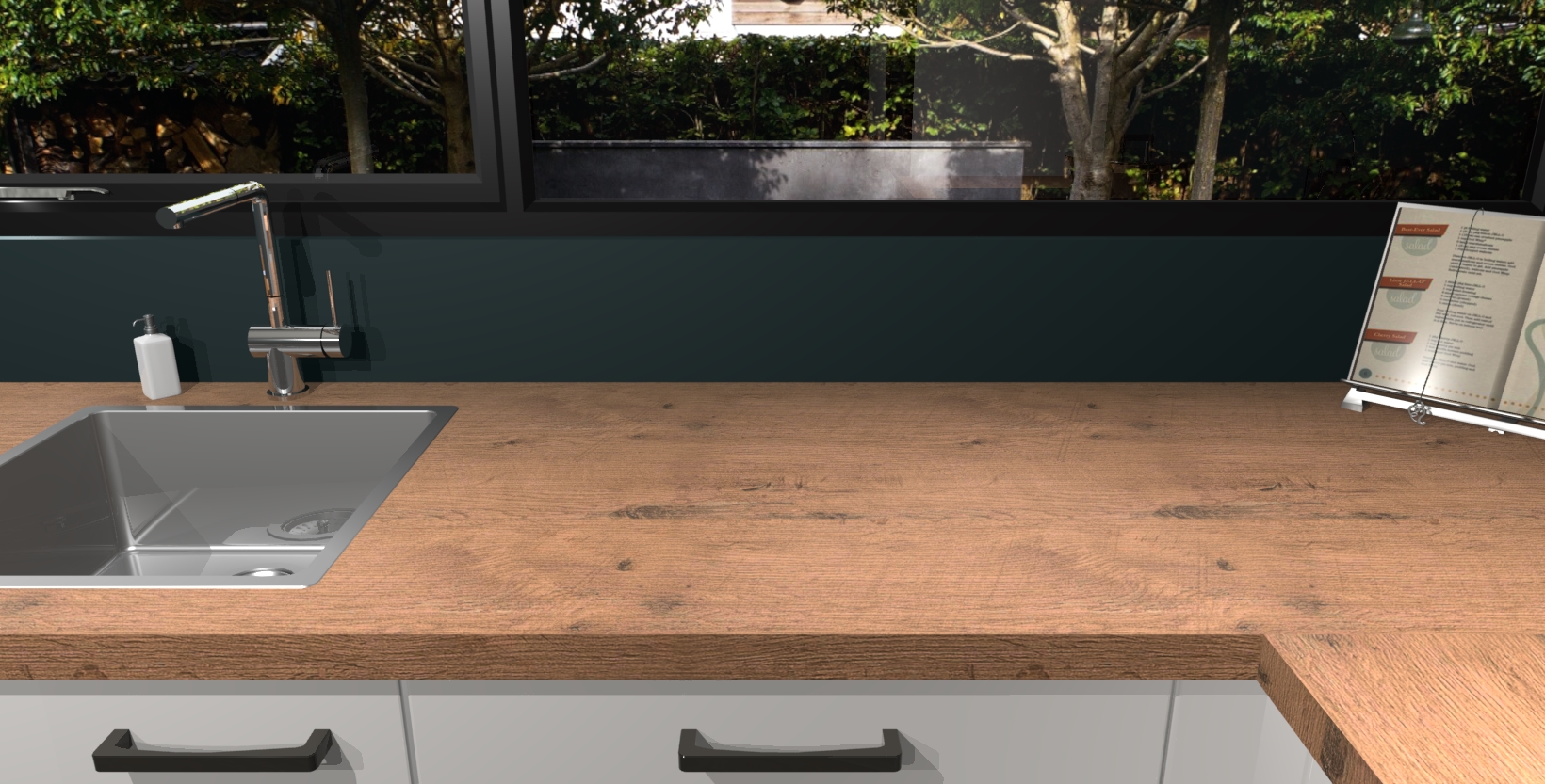 - Bij een hoekwerkblad zijn de hoeken in gevreesd en op maat gemaakt