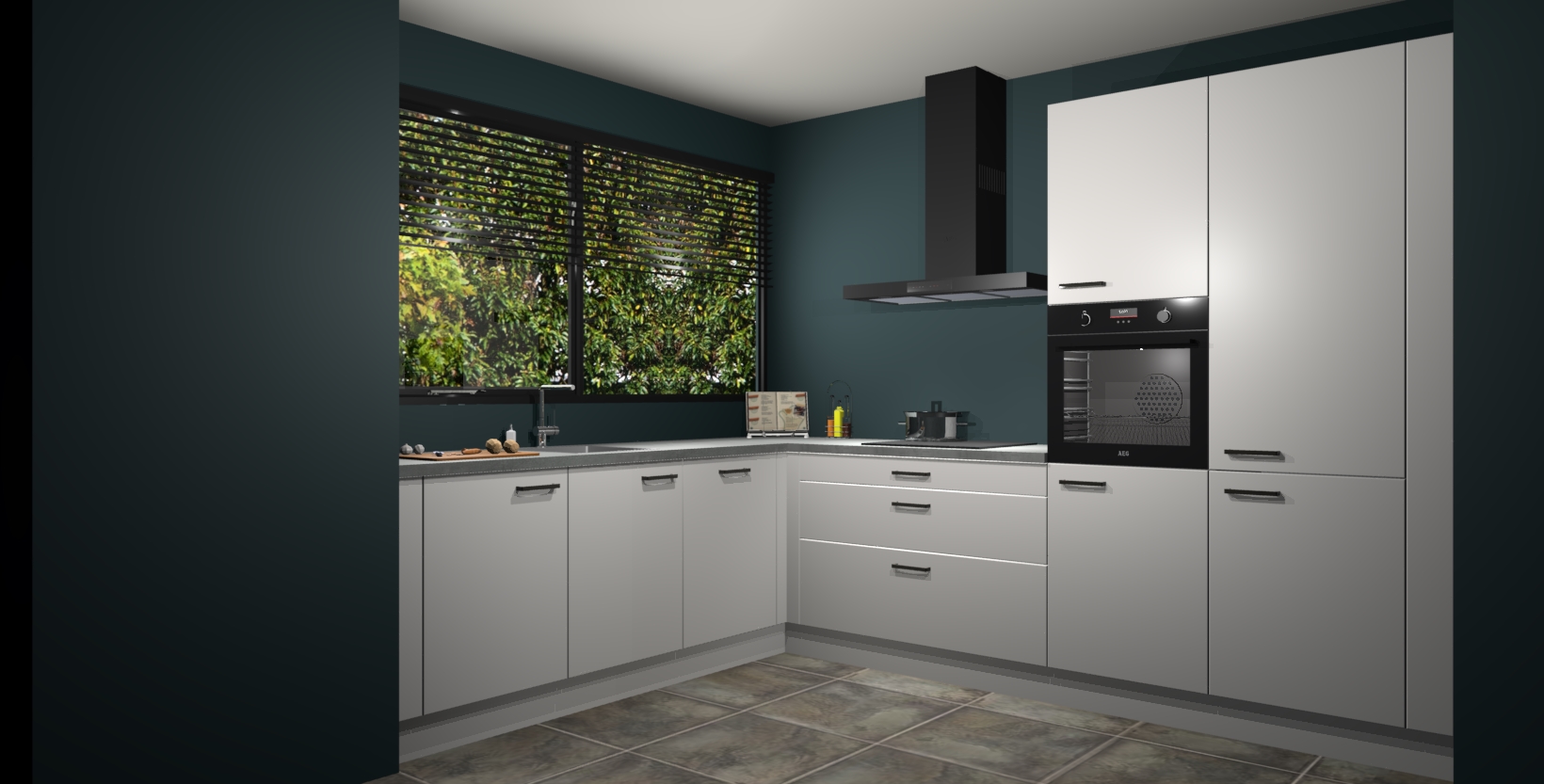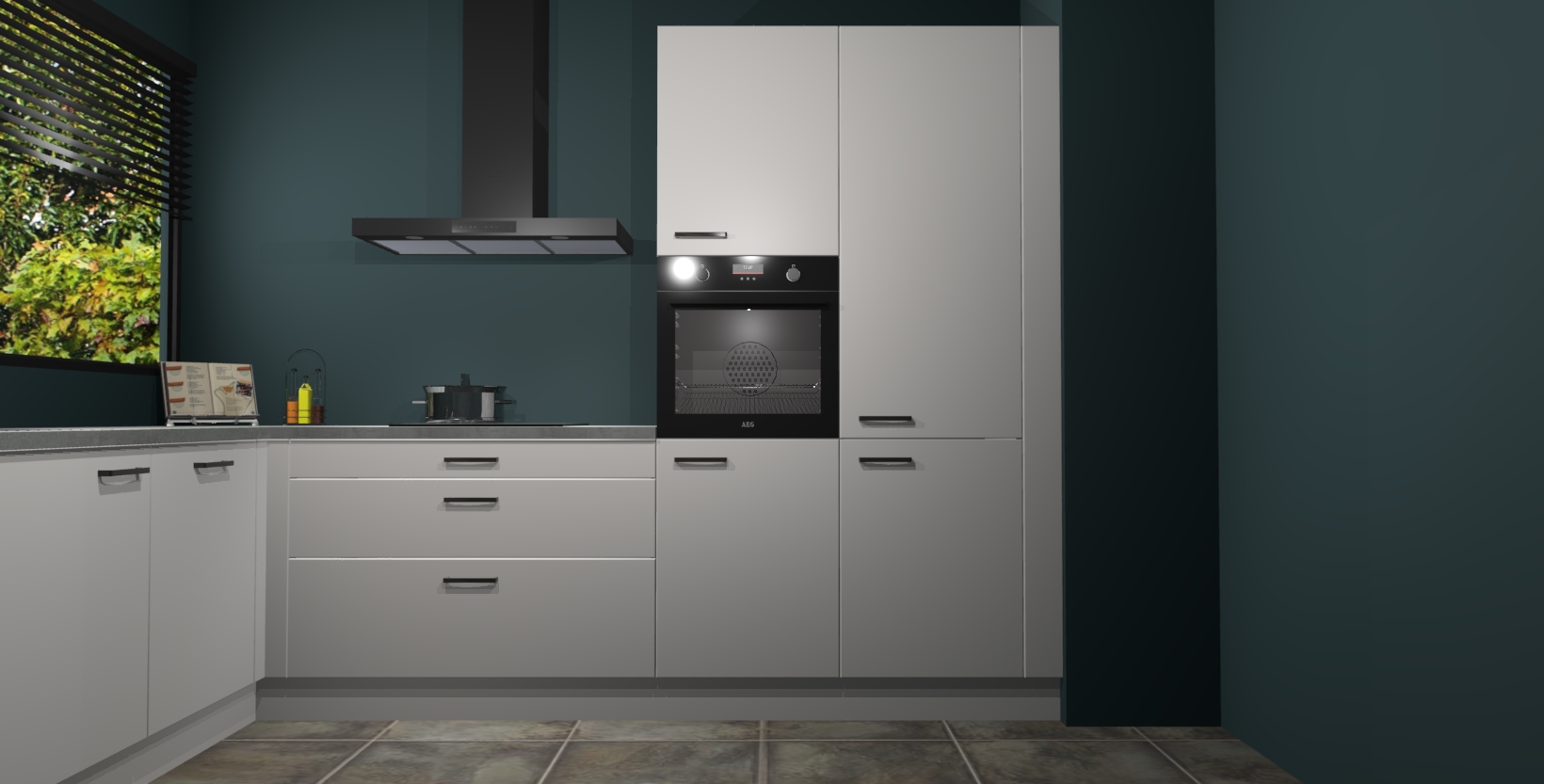 Met een modern, tijdloos design en ruime opslagruimte, zult u zich in no-time thuis voelen in uw nieuwe keuken. Uw leven wordt eenvoudiger met de soft-close deuren die voor het ultieme stille comfort zorgen - geen geluid dat u stoort terwijl u kookt. Ook is de keuken voorzien van 5 ingebouwde apparaten: een oven, inductie kookplaat, afzuigkap, vaatwasser en koelkast. Deze kunnen gemakkelijk na bestelling worden bijgewerkt naar AEG - waardoor uw luxe ervaring compleet is.