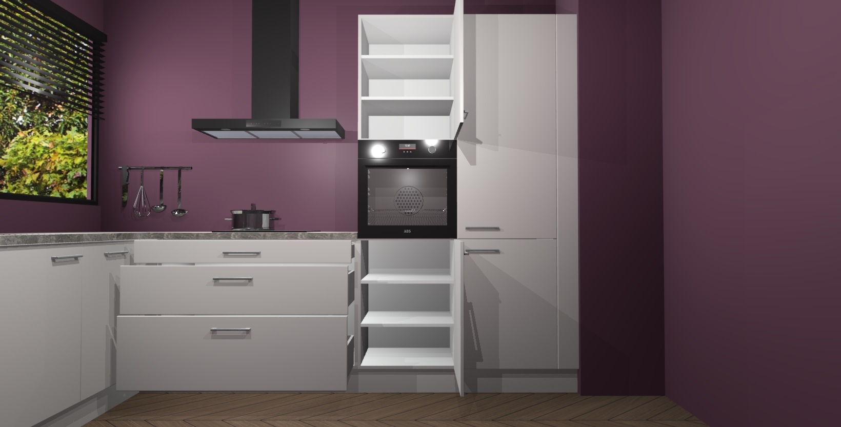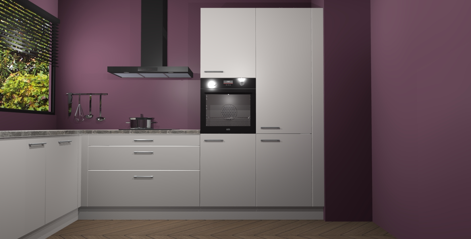 Met een modern, tijdloos design en ruime opslagruimte, zult u zich in no-time thuis voelen in uw nieuwe keuken. Uw leven wordt eenvoudiger met de soft-close deuren die voor het ultieme stille comfort zorgen - geen geluid dat u stoort terwijl u kookt. Ook is de keuken voorzien van 5 ingebouwde apparaten: een oven, inductie kookplaat, afzuigkap, vaatwasser en koelkast. Deze kunnen gemakkelijk na bestelling worden bijgewerkt naar AEG - waardoor uw luxe ervaring compleet is.