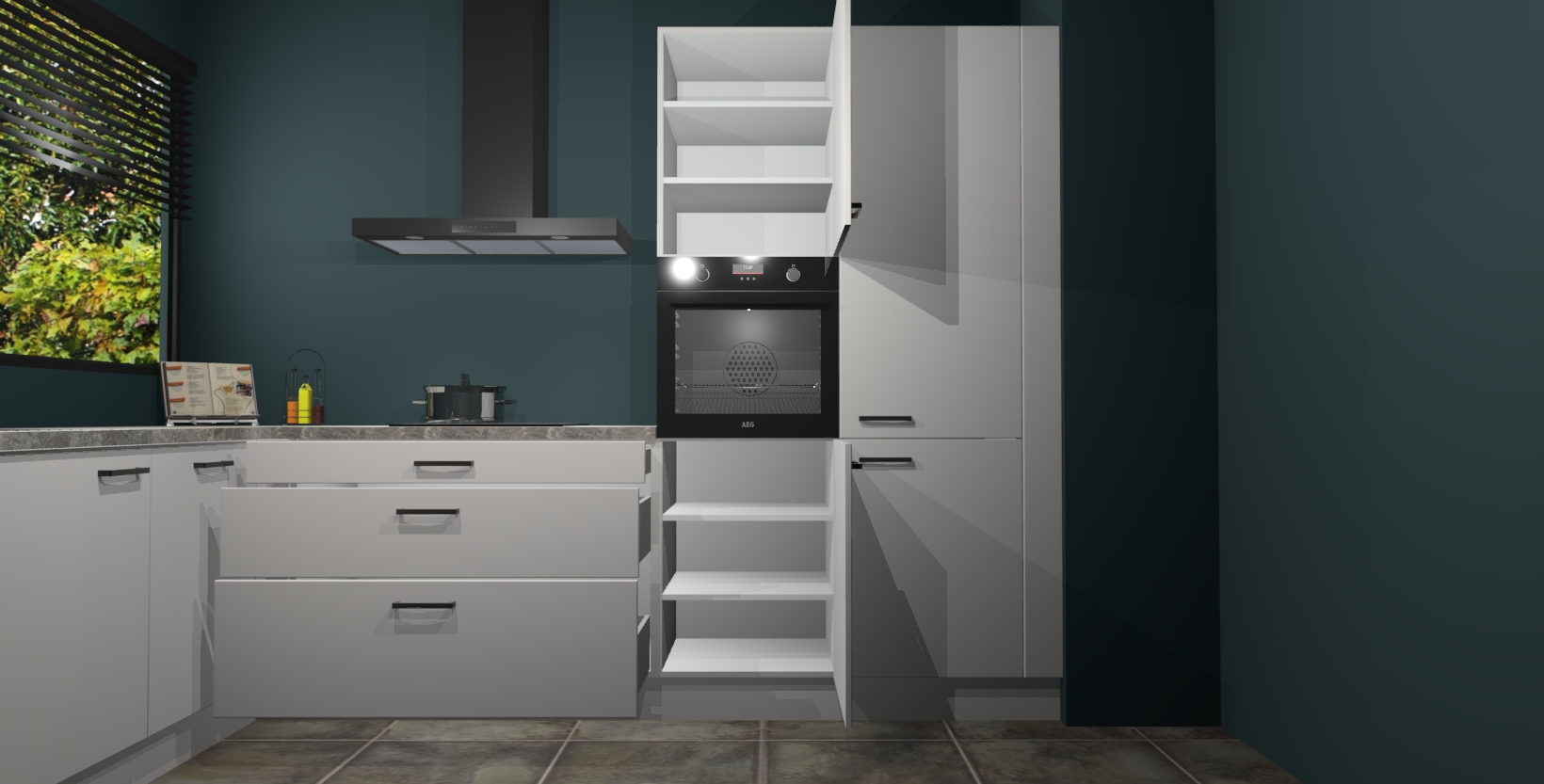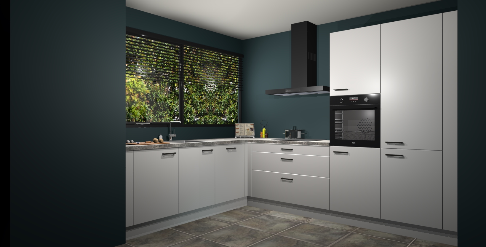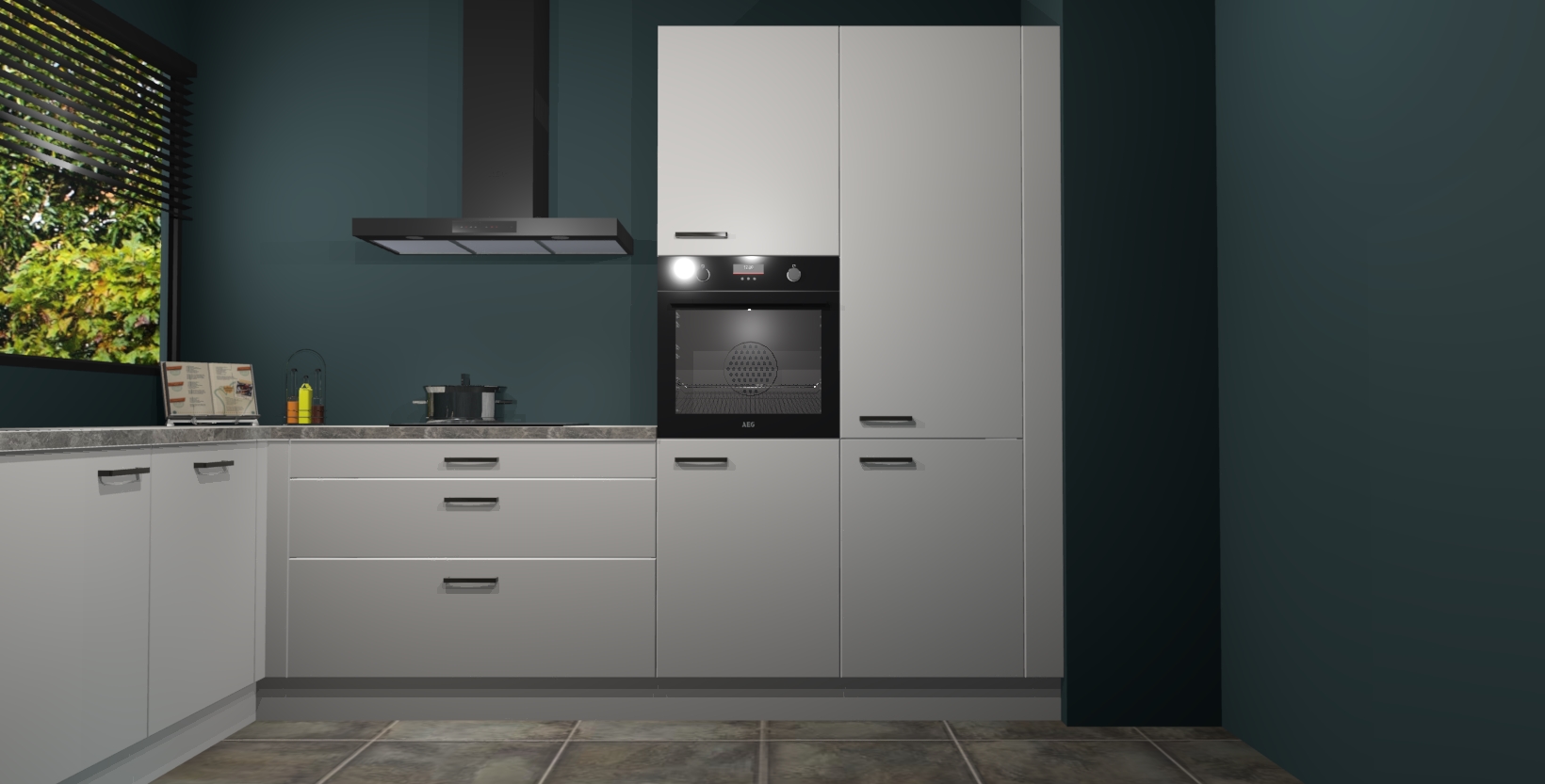 Met een modern, tijdloos design en ruime opslagruimte, zult u zich in no-time thuis voelen in uw nieuwe keuken. Uw leven wordt eenvoudiger met de soft-close deuren die voor het ultieme stille comfort zorgen - geen geluid dat u stoort terwijl u kookt. Ook is de keuken voorzien van 5 ingebouwde apparaten: een oven, inductie kookplaat, afzuigkap, vaatwasser en koelkast. Deze kunnen gemakkelijk na bestelling worden bijgewerkt naar AEG - waardoor uw luxe ervaring compleet is.
