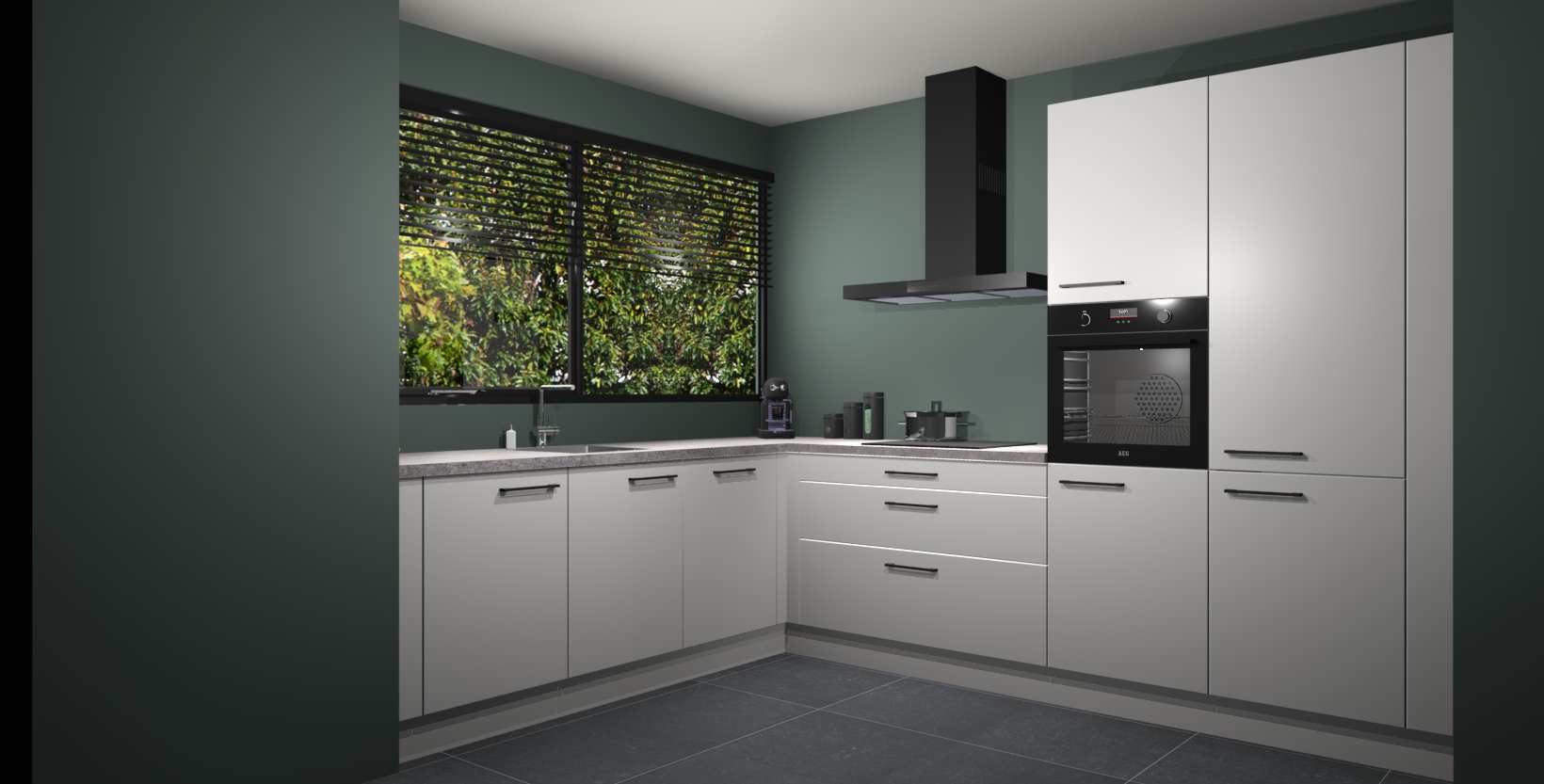 Met een modern, tijdloos design en ruime opslagruimte, zult u zich in no-time thuis voelen in uw nieuwe keuken. Uw leven wordt eenvoudiger met de soft-close deuren die voor het ultieme stille comfort zorgen - geen geluid dat u stoort terwijl u kookt. Ook is de keuken voorzien van 5 ingebouwde apparaten: een oven, inductie kookplaat, afzuigkap, vaatwasser en koelkast. Deze kunnen gemakkelijk na bestelling worden bijgewerkt naar AEG - waardoor uw luxe ervaring compleet is.