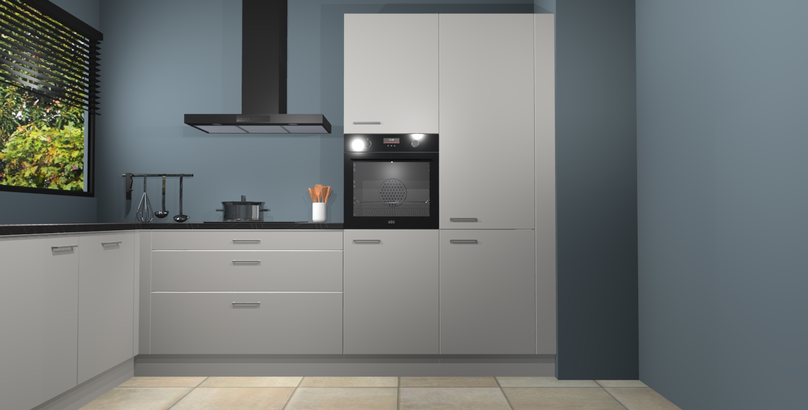 Met een modern, tijdloos design en ruime opslagruimte, zult u zich in no-time thuis voelen in uw nieuwe keuken. Uw leven wordt eenvoudiger met de soft-close deuren die voor het ultieme stille comfort zorgen - geen geluid dat u stoort terwijl u kookt. Ook is de keuken voorzien van 5 ingebouwde apparaten: een oven, inductie kookplaat, afzuigkap, vaatwasser en koelkast. Deze kunnen gemakkelijk na bestelling worden bijgewerkt naar AEG - waardoor uw luxe ervaring compleet is.