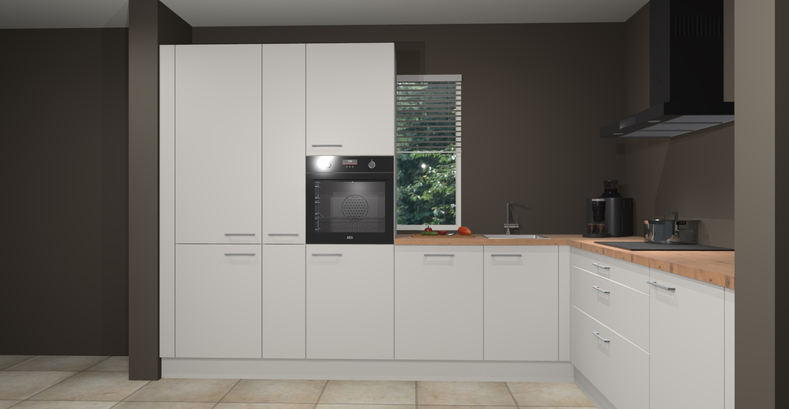 Met een modern, tijdloos design en ruime opslagruimte, zult u zich in no-time thuis voelen in uw nieuwe keuken. Uw leven wordt eenvoudiger met de soft-close deuren die voor het ultieme stille comfort zorgen - geen geluid dat u stoort terwijl u kookt. Ook is de keuken voorzien van 5 ingebouwde apparaten: een oven, inductie kookplaat, afzuigkap, vaatwasser en koelkast. Deze kunnen gemakkelijk na bestelling worden bijgewerkt naar AEG - waardoor uw luxe ervaring compleet is.