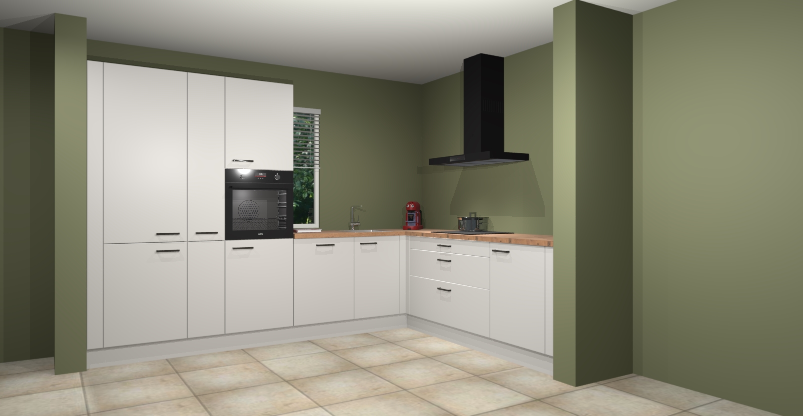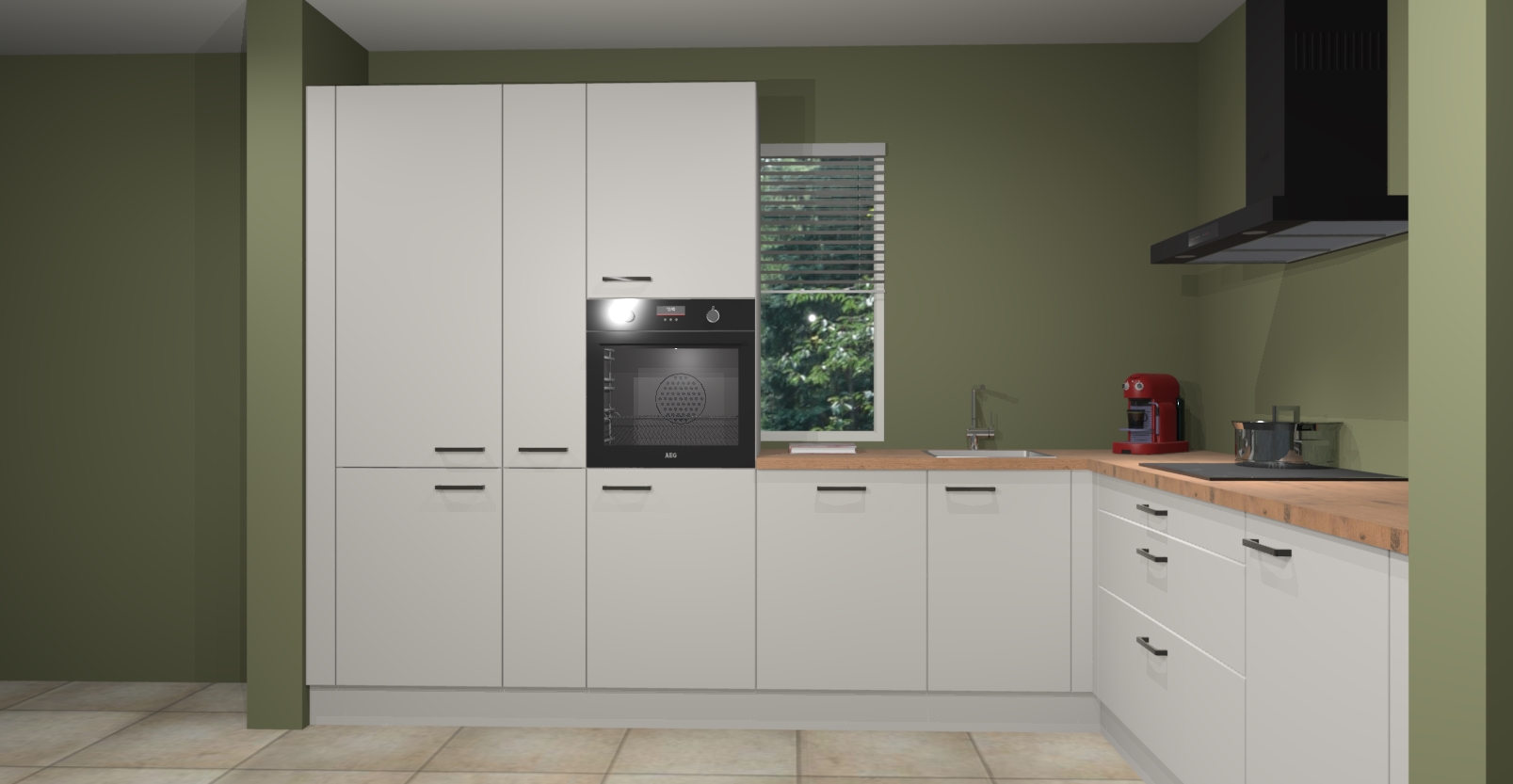 Met een modern, tijdloos design en ruime opslagruimte, zult u zich in no-time thuis voelen in uw nieuwe keuken. Uw leven wordt eenvoudiger met de soft-close deuren die voor het ultieme stille comfort zorgen - geen geluid dat u stoort terwijl u kookt. Ook is de keuken voorzien van 5 ingebouwde apparaten: een oven, inductie kookplaat, afzuigkap, vaatwasser en koelkast. Deze kunnen gemakkelijk na bestelling worden bijgewerkt naar AEG - waardoor uw luxe ervaring compleet is.