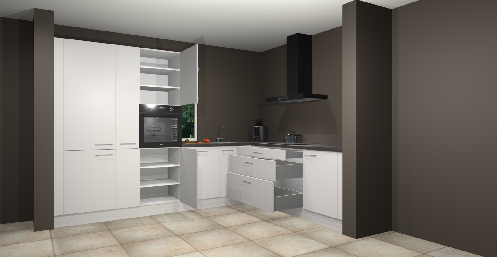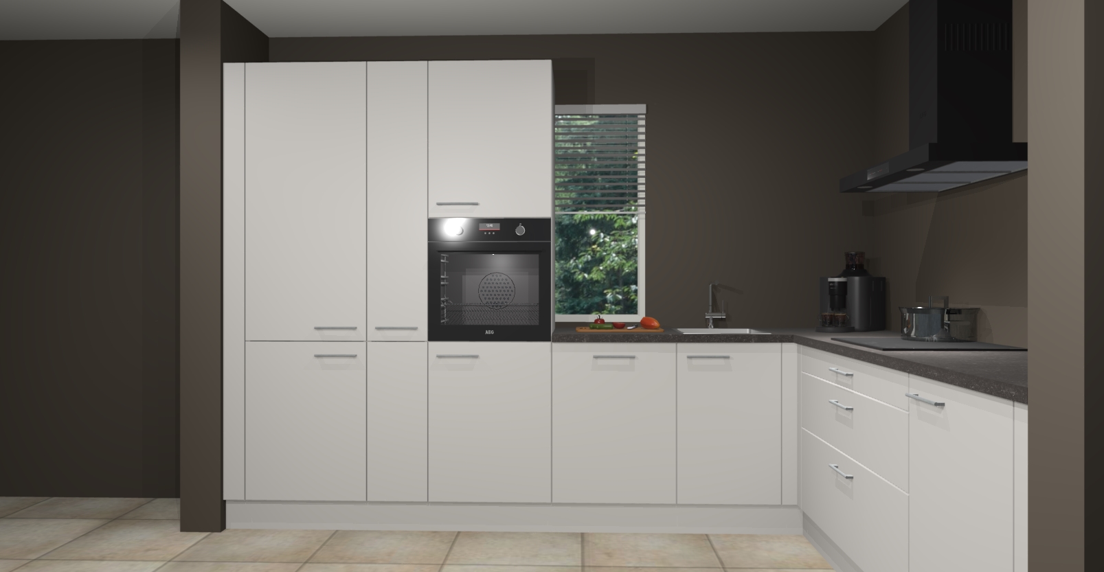 Met een modern, tijdloos design en ruime opslagruimte, zult u zich in no-time thuis voelen in uw nieuwe keuken. Uw leven wordt eenvoudiger met de soft-close deuren die voor het ultieme stille comfort zorgen - geen geluid dat u stoort terwijl u kookt. Ook is de keuken voorzien van 5 ingebouwde apparaten: een oven, inductie kookplaat, afzuigkap, vaatwasser en koelkast. Deze kunnen gemakkelijk na bestelling worden bijgewerkt naar AEG - waardoor uw luxe ervaring compleet is.