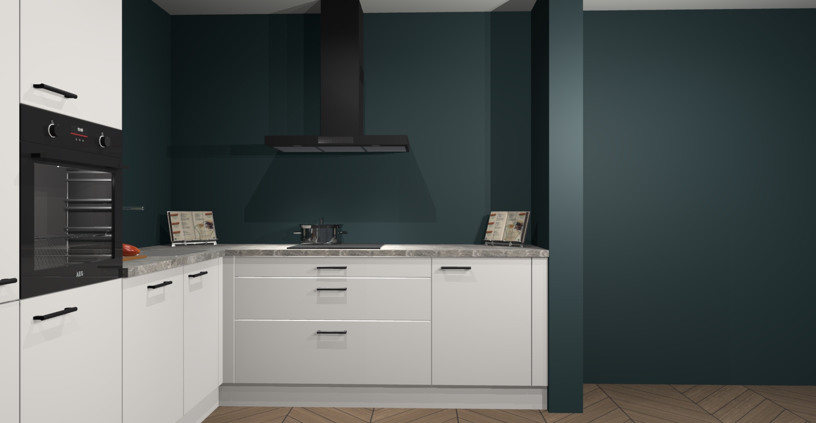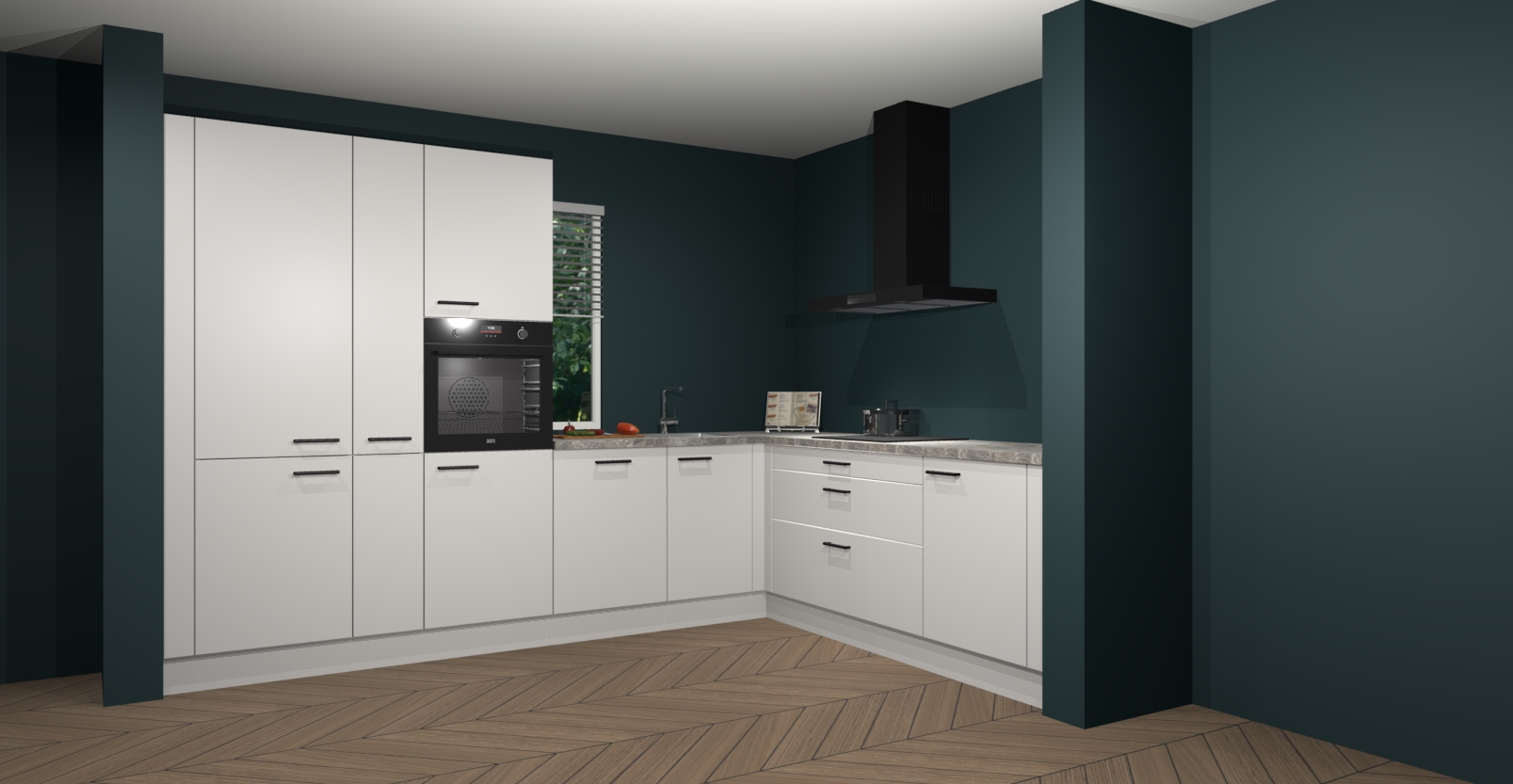 Met een modern, tijdloos design en ruime opslagruimte, zult u zich in no-time thuis voelen in uw nieuwe keuken. Uw leven wordt eenvoudiger met de soft-close deuren die voor het ultieme stille comfort zorgen - geen geluid dat u stoort terwijl u kookt. Ook is de keuken voorzien van 5 ingebouwde apparaten: een oven, inductie kookplaat, afzuigkap, vaatwasser en koelkast. Deze kunnen gemakkelijk na bestelling worden bijgewerkt naar AEG - waardoor uw luxe ervaring compleet is.