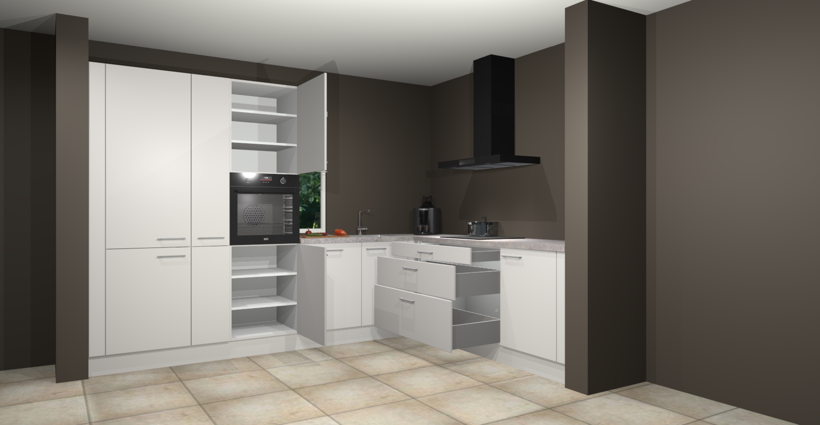 Met een modern, tijdloos design en ruime opslagruimte, zult u zich in no-time thuis voelen in uw nieuwe keuken. Uw leven wordt eenvoudiger met de soft-close deuren die voor het ultieme stille comfort zorgen - geen geluid dat u stoort terwijl u kookt. Ook is de keuken voorzien van 5 ingebouwde apparaten: een oven, inductie kookplaat, afzuigkap, vaatwasser en koelkast. Deze kunnen gemakkelijk na bestelling worden bijgewerkt naar AEG - waardoor uw luxe ervaring compleet is.