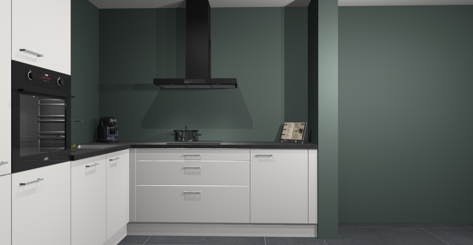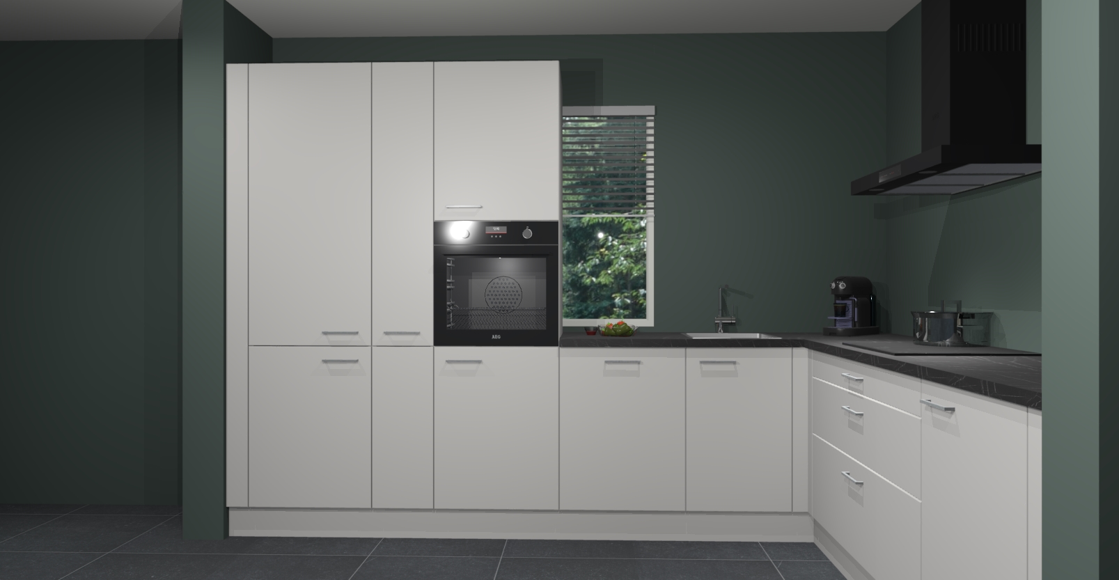 Met een modern, tijdloos design en ruime opslagruimte, zult u zich in no-time thuis voelen in uw nieuwe keuken. Uw leven wordt eenvoudiger met de soft-close deuren die voor het ultieme stille comfort zorgen - geen geluid dat u stoort terwijl u kookt. Ook is de keuken voorzien van 5 ingebouwde apparaten: een oven, inductie kookplaat, afzuigkap, vaatwasser en koelkast. Deze kunnen gemakkelijk na bestelling worden bijgewerkt naar AEG - waardoor uw luxe ervaring compleet is.