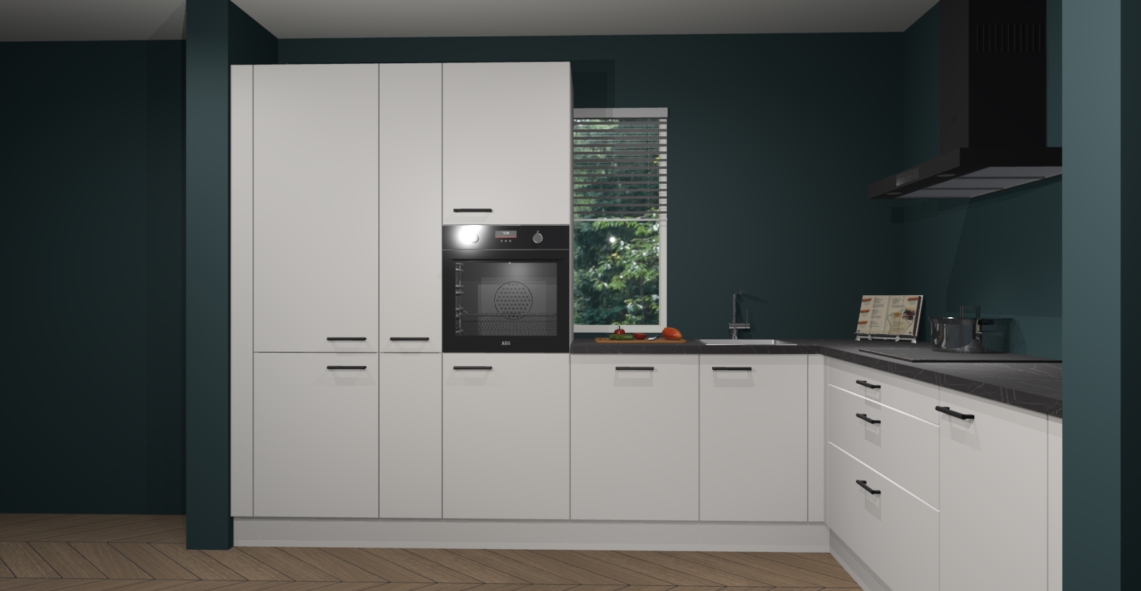 Met een modern, tijdloos design en ruime opslagruimte, zult u zich in no-time thuis voelen in uw nieuwe keuken. Uw leven wordt eenvoudiger met de soft-close deuren die voor het ultieme stille comfort zorgen - geen geluid dat u stoort terwijl u kookt. Ook is de keuken voorzien van 5 ingebouwde apparaten: een oven, inductie kookplaat, afzuigkap, vaatwasser en koelkast. Deze kunnen gemakkelijk na bestelling worden bijgewerkt naar AEG - waardoor uw luxe ervaring compleet is.