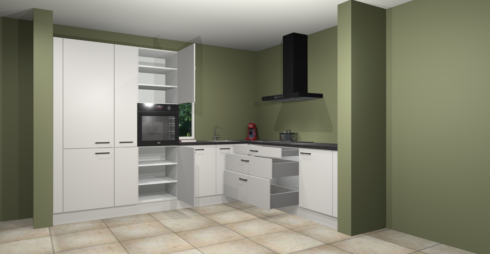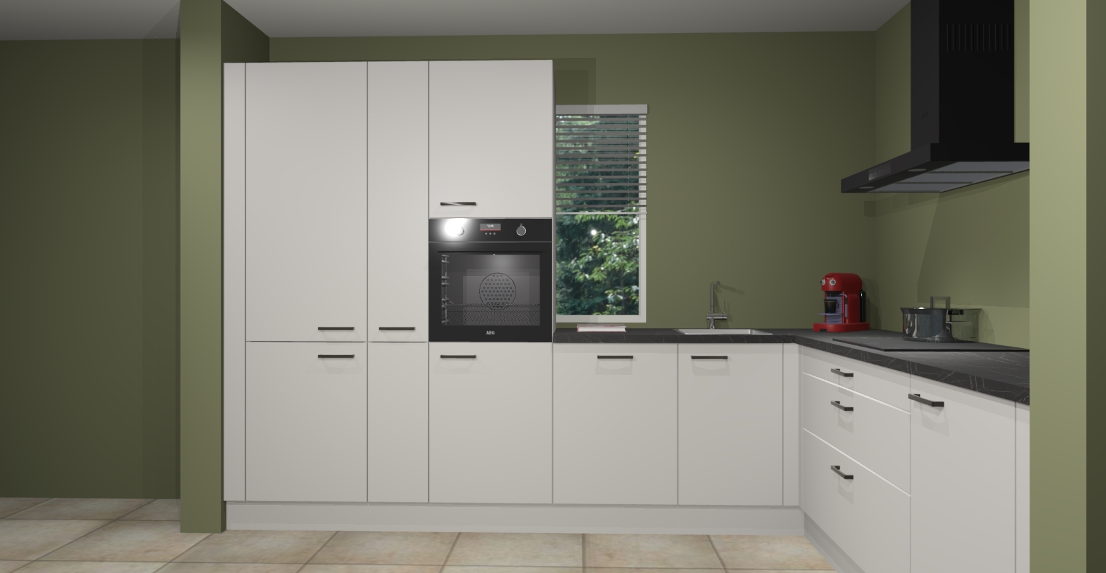 Met een modern, tijdloos design en ruime opslagruimte, zult u zich in no-time thuis voelen in uw nieuwe keuken. Uw leven wordt eenvoudiger met de soft-close deuren die voor het ultieme stille comfort zorgen - geen geluid dat u stoort terwijl u kookt. Ook is de keuken voorzien van 5 ingebouwde apparaten: een oven, inductie kookplaat, afzuigkap, vaatwasser en koelkast. Deze kunnen gemakkelijk na bestelling worden bijgewerkt naar AEG - waardoor uw luxe ervaring compleet is.