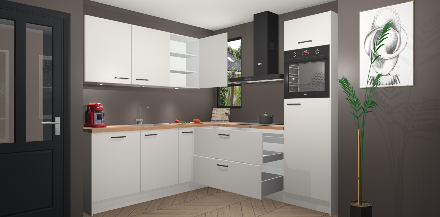 Als extra werd de prijs zo laag mogelijk vastgesteld, zonder aan de kwaliteit te raken. Zo heb je gegarandeerde Duitse keukenkwaliteit waarmee je jarenlang plezier beleeft aan het ontwerp. En dat alles wordt gecombineerd met een supersnelle service van maar liefst 7 weken!