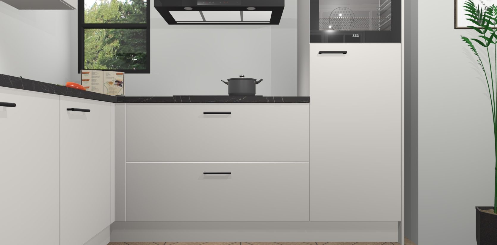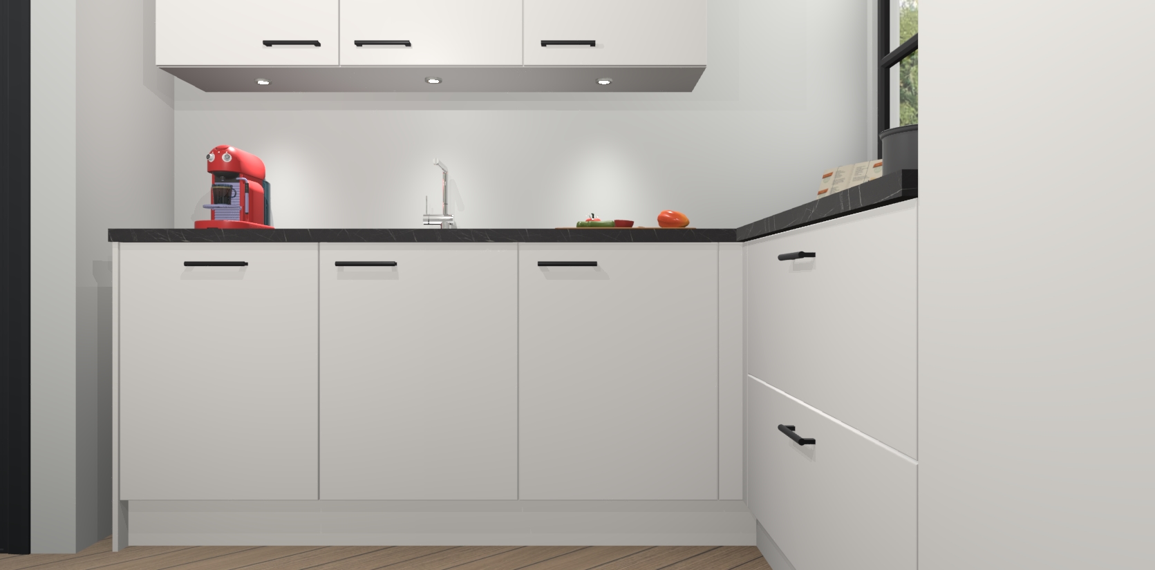 Inclusief plinten, stelpoten en werkblad