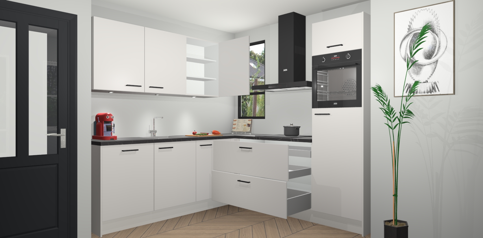 Als extra werd de prijs zo laag mogelijk vastgesteld, zonder aan de kwaliteit te raken. Zo heb je gegarandeerde Duitse keukenkwaliteit waarmee je jarenlang plezier beleeft aan het ontwerp. En dat alles wordt gecombineerd met een supersnelle service van maar liefst 7 weken!