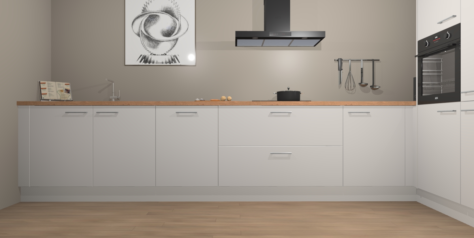 Inclusief plinten, stelpoten en werkblad