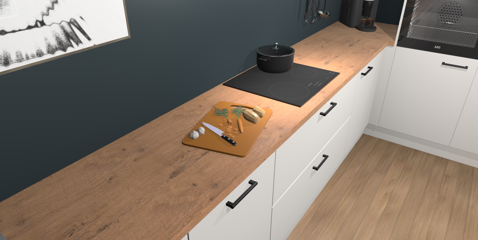 Inclusief plinten, stelpoten en werkblad